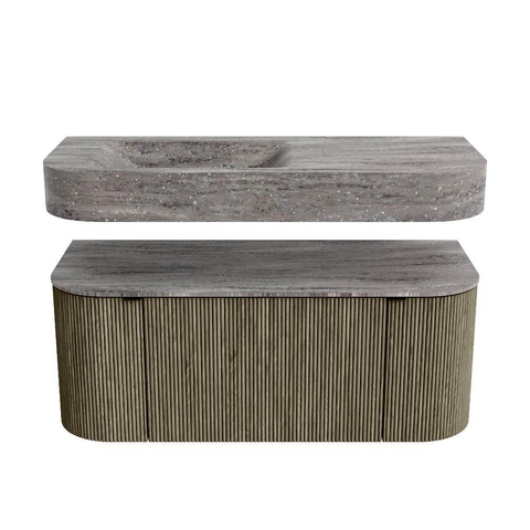 MONDIAZ THOR-DLUX 110cm badmeubel ronding links + rechts kleur Shadow met 1 lade en 2 deuren. Vrijhangende wastafel CLOUD Links 1 kraangat kleur Oza.