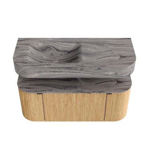 Ontdek THOR, een meubel dat architectuur en ambacht samenbrengt. Deze exclusieve serie THOR kenmerkt zich door haar verticale ribbelstructuur, uitgevoerd in massief eikenhout en eiken fineer. De vormgeving is strak en vloeiend tegelijk, met afgeronde contouren die elegantie en zachtheid uitstralen.