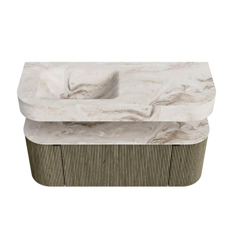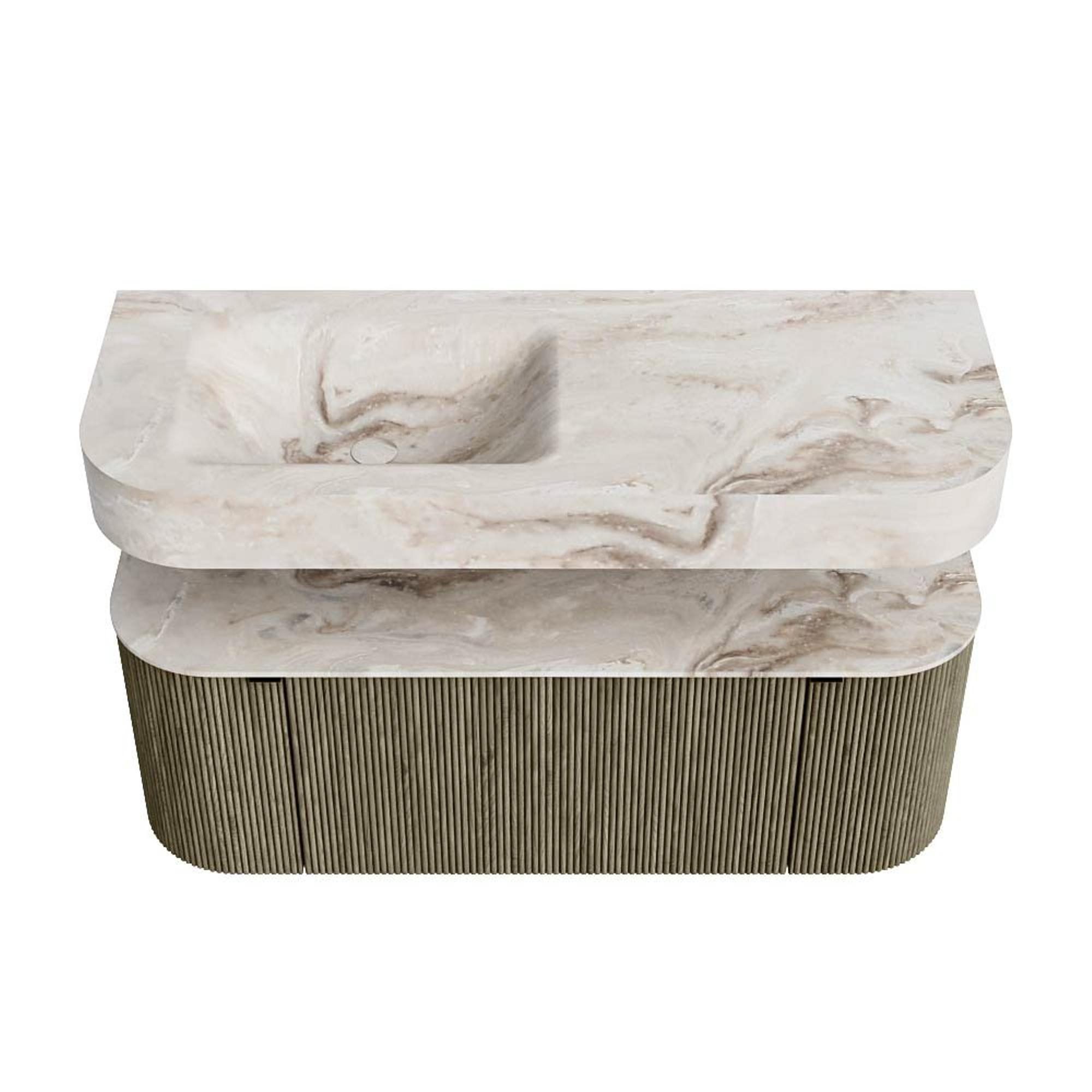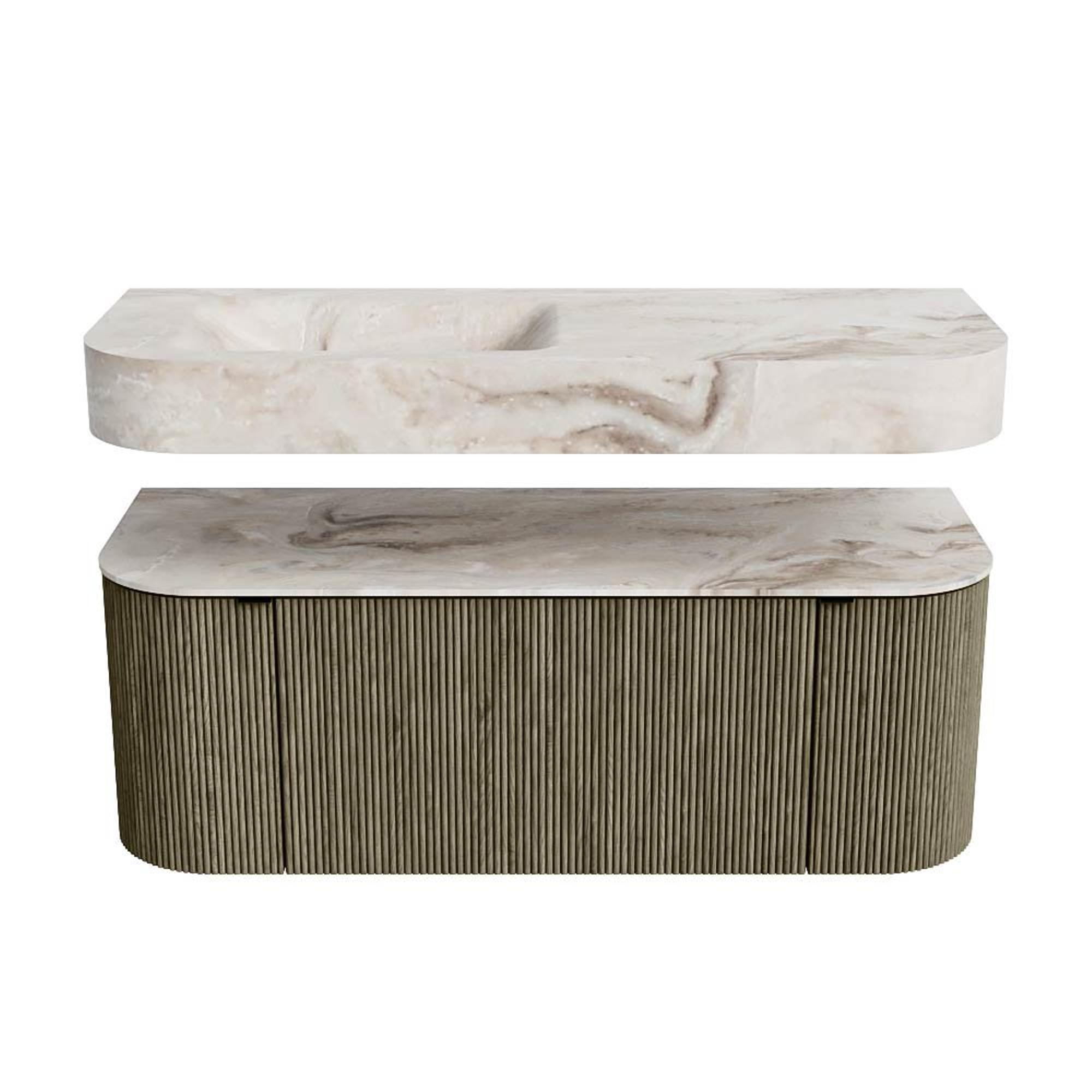 MONDIAZ THOR-DLUX 120cm badmeubel ronding links + rechts kleur Shadow met 1 lade en 2 deuren. Vrijhangende wastafel CLOUD Links zonder kraangat kleur Frappe.