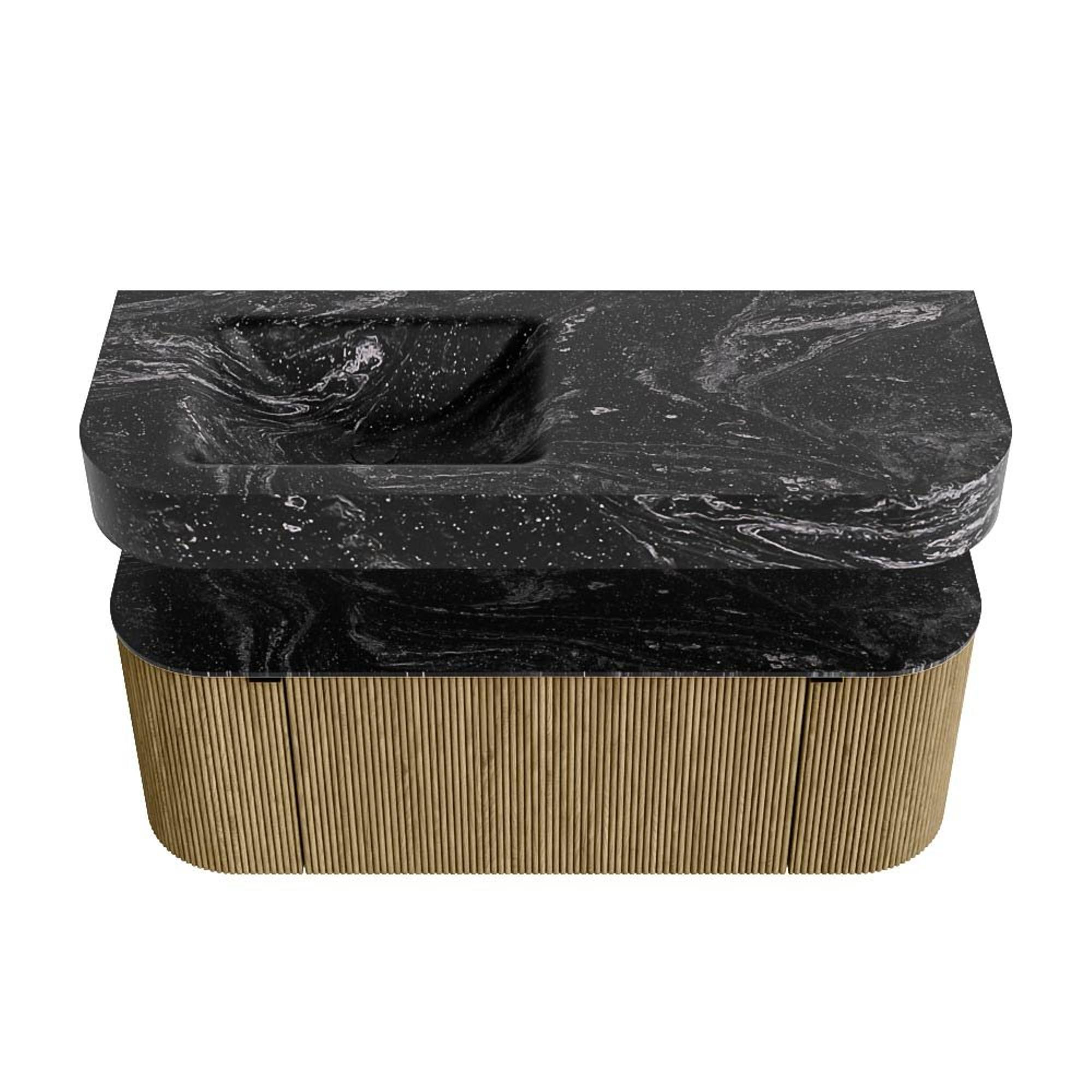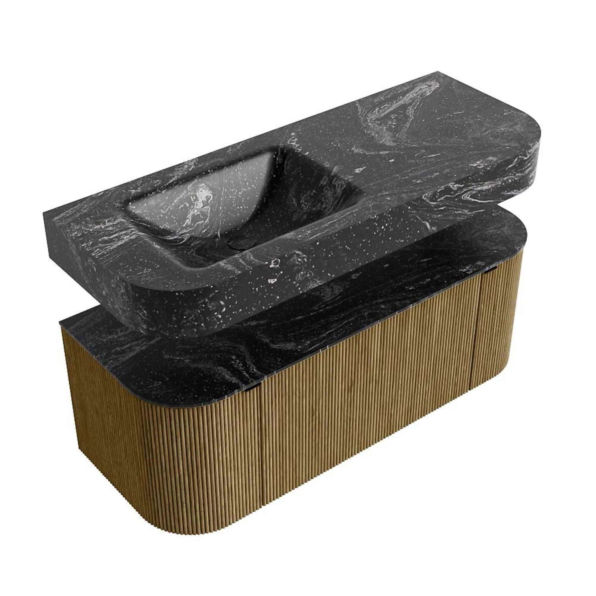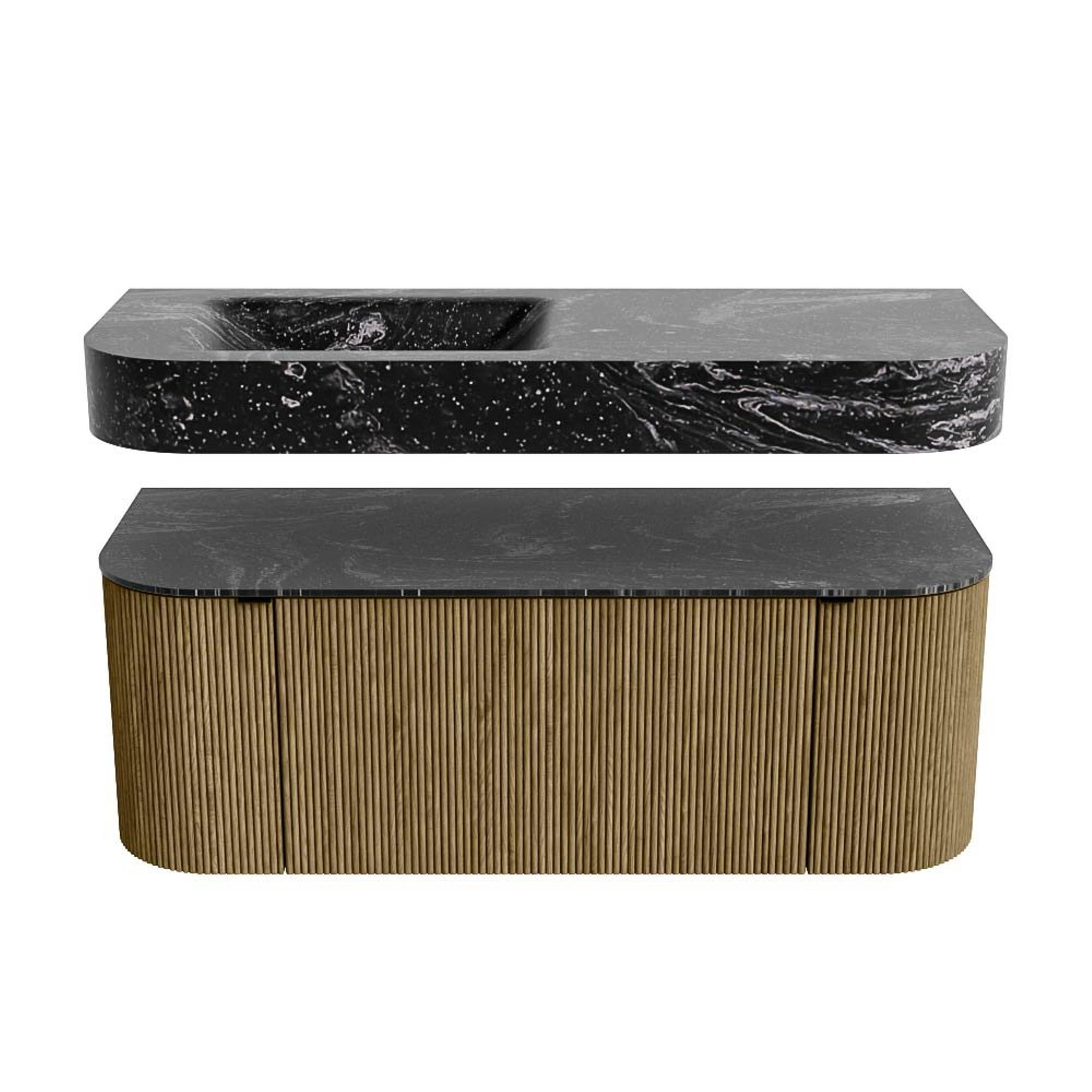 MONDIAZ THOR-DLUX 120cm badmeubel ronding links + rechts kleur Dusk met 1 lade en 2 deuren. Vrijhangende wastafel CLOUD Links 1 kraangat kleur Lava.