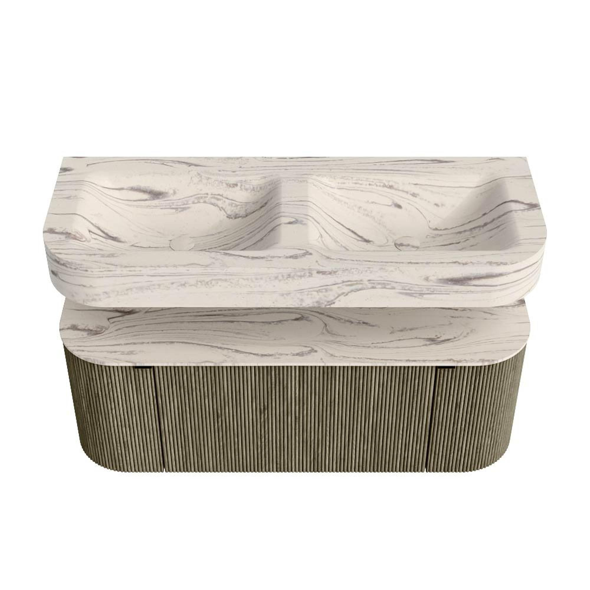 MONDIAZ THOR-DLUX 120cm badmeubel ronding links + rechts kleur Shadow met 1 lade en 2 deuren. Vrijhangende wastafel CLOUD Dubbel zonder kraangat kleur Nata.