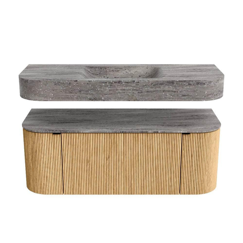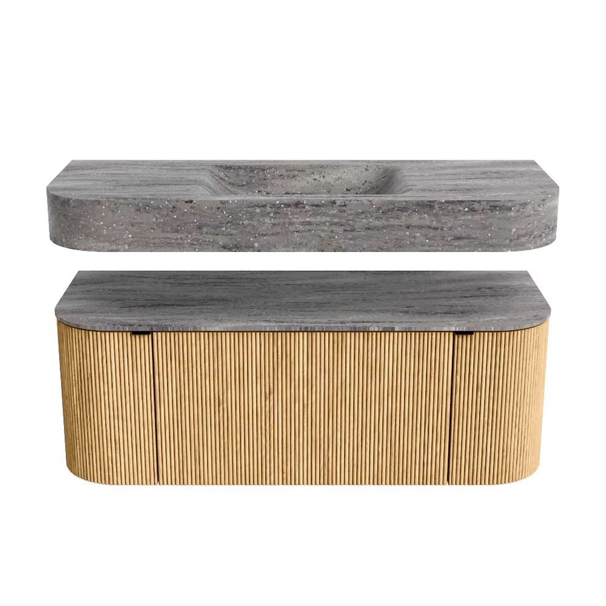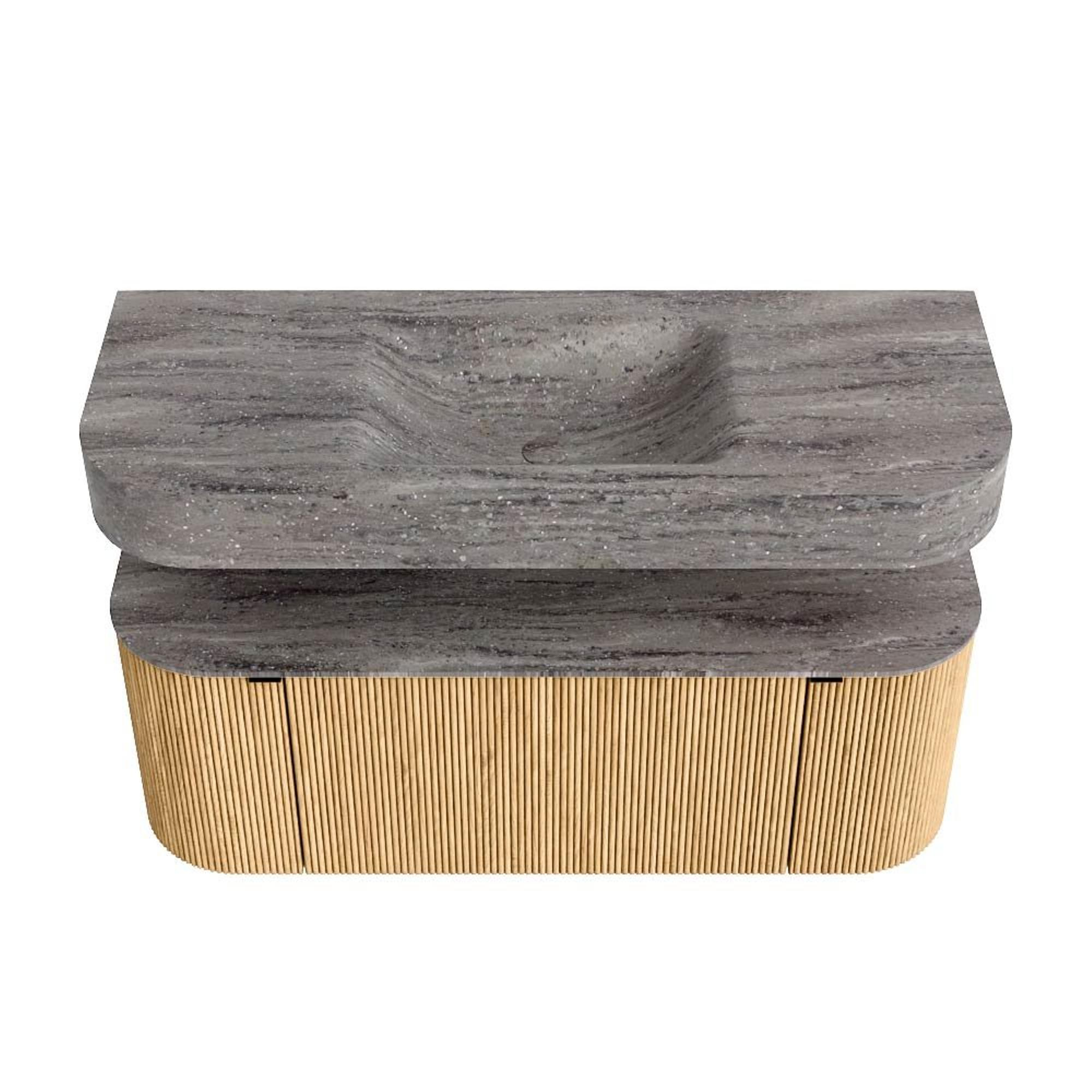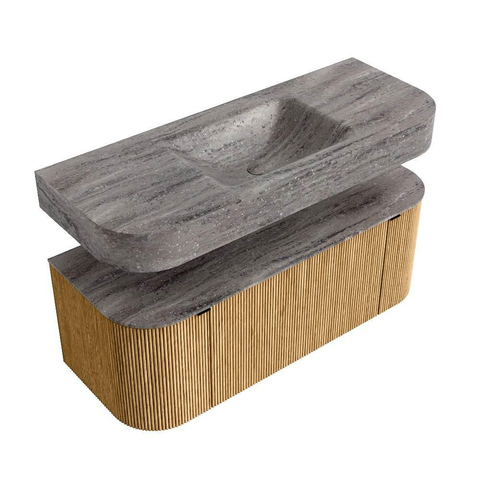 MONDIAZ THOR-DLUX 120cm badmeubel ronding links + rechts kleur Oak met 1 lade en 2 deuren. Vrijhangende wastafel CLOUD Midden 1 kraangat kleur Oza.