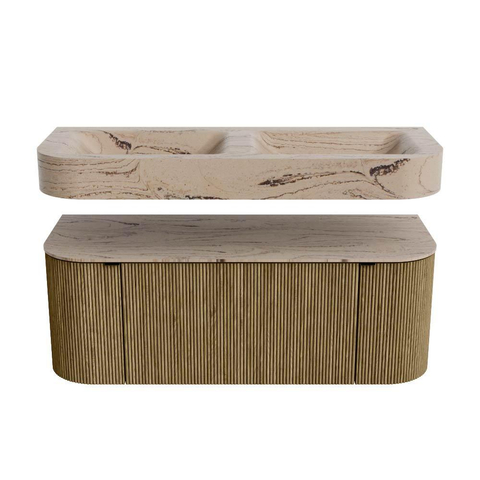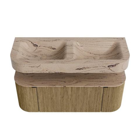 Natuurlijke materialen in warme tinten. De verticale ribbels brengen ritme en textuur in het ontwerp, terwijl het eikenhout zorgt voor een warme, ambachtelijke uitstraling. Kies uit 5 houttinten OAK, WALNUT, DUSK, SHADOW en RUBY zorgvuldig geselecteerde houtkleuren om zowel moderne als klassieke badkamers te verrijken.