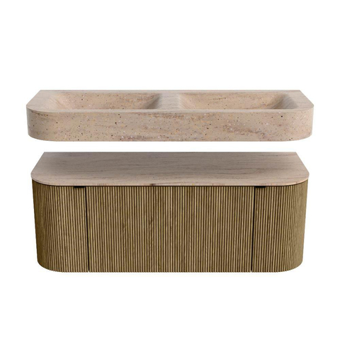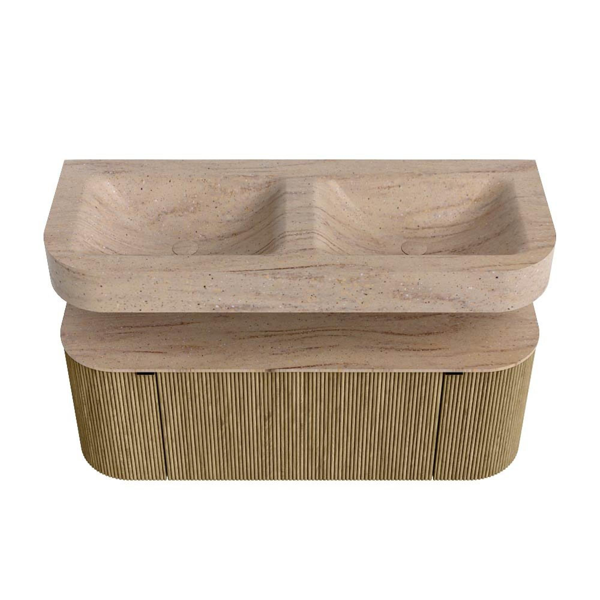 Natuurlijke materialen in warme tinten. De verticale ribbels brengen ritme en textuur in het ontwerp, terwijl het eikenhout zorgt voor een warme, ambachtelijke uitstraling. Kies uit 5 houttinten OAK, WALNUT, DUSK, SHADOW en RUBY zorgvuldig geselecteerde houtkleuren om zowel moderne als klassieke badkamers te verrijken.