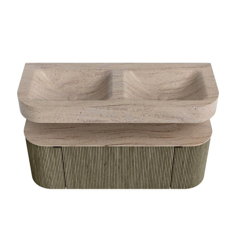 Natuurlijke materialen in warme tinten. De verticale ribbels brengen ritme en textuur in het ontwerp, terwijl het eikenhout zorgt voor een warme, ambachtelijke uitstraling. Kies uit 5 houttinten OAK, WALNUT, DUSK, SHADOW en RUBY zorgvuldig geselecteerde houtkleuren om zowel moderne als klassieke badkamers te verrijken.