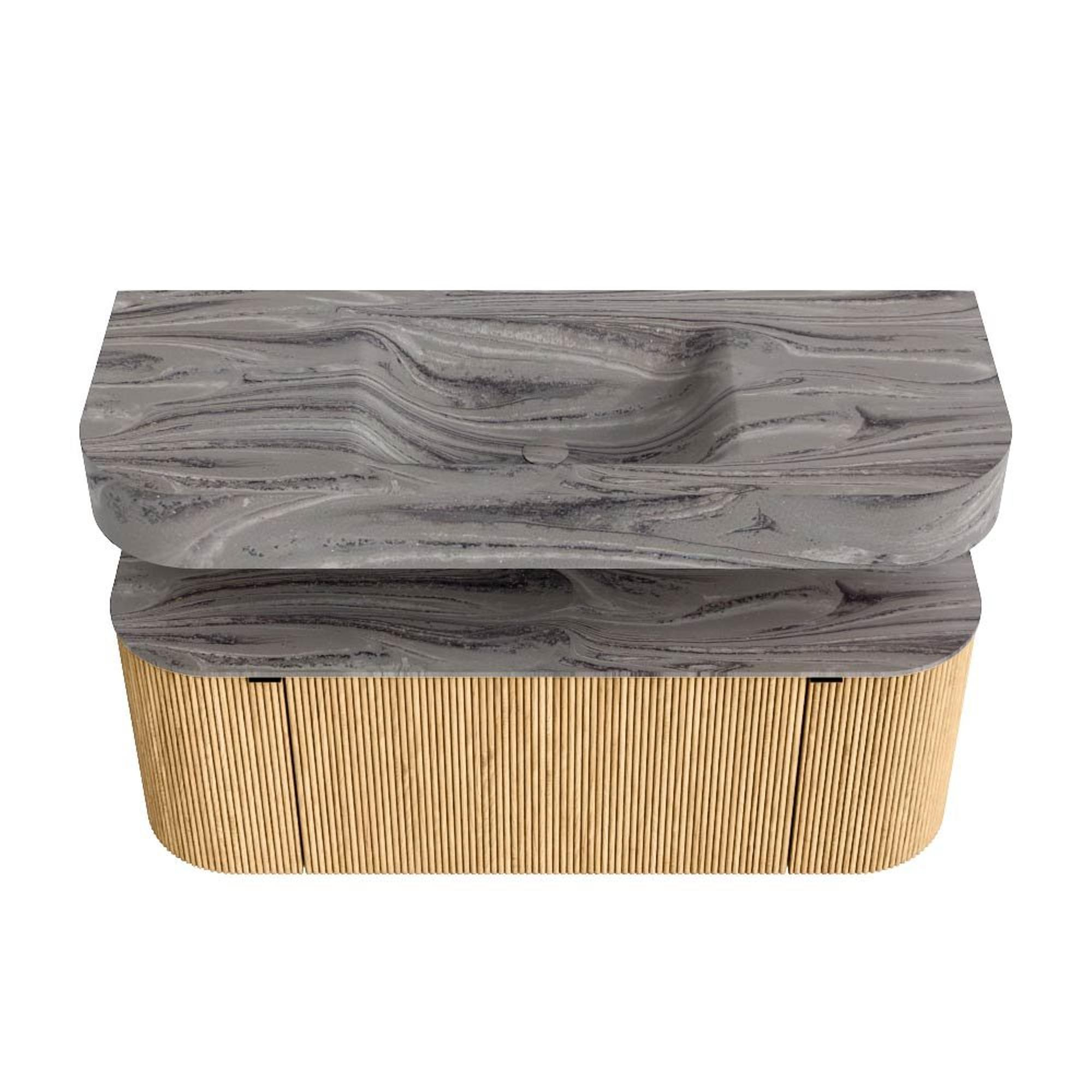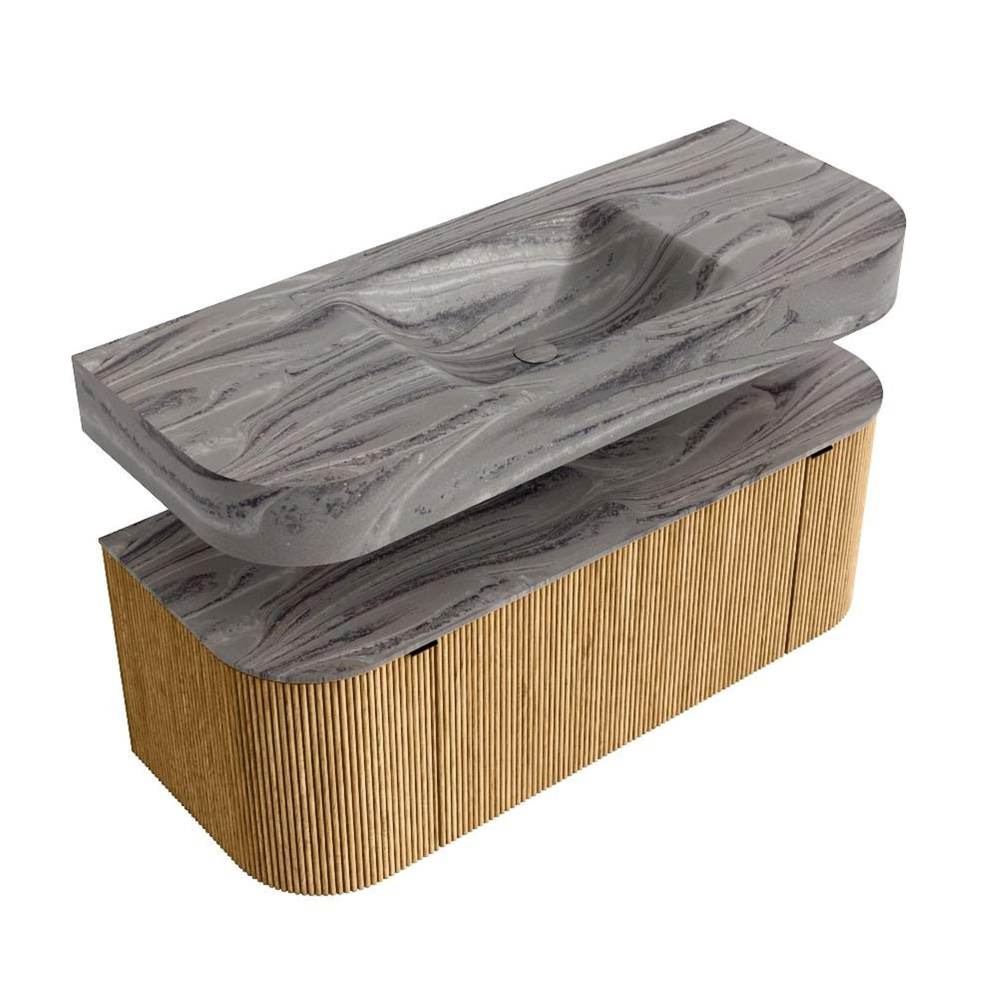 MONDIAZ THOR-DLUX 120cm badmeubel ronding links + rechts kleur Oak met 1 lade en 2 deuren. Vrijhangende wastafel CLOUD Midden 1 kraangat kleur Sombra.