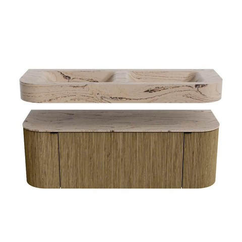 Natuurlijke materialen in warme tinten. De verticale ribbels brengen ritme en textuur in het ontwerp, terwijl het eikenhout zorgt voor een warme, ambachtelijke uitstraling. Kies uit 5 houttinten OAK, WALNUT, DUSK, SHADOW en RUBY zorgvuldig geselecteerde houtkleuren om zowel moderne als klassieke badkamers te verrijken.