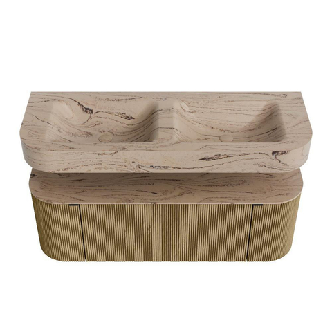 Ontdek THOR, een meubel dat architectuur en ambacht samenbrengt. Deze exclusieve serie THOR kenmerkt zich door haar verticale ribbelstructuur, uitgevoerd in massief eikenhout en eiken fineer. De vormgeving is strak en vloeiend tegelijk, met afgeronde contouren die elegantie en zachtheid uitstralen.