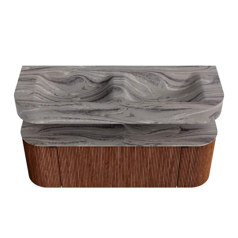 Natuurlijke materialen in warme tinten. De verticale ribbels brengen ritme en textuur in het ontwerp, terwijl het eikenhout zorgt voor een warme, ambachtelijke uitstraling. Kies uit 5 houttinten OAK, WALNUT, DUSK, SHADOW en RUBY zorgvuldig geselecteerde houtkleuren om zowel moderne als klassieke badkamers te verrijken.