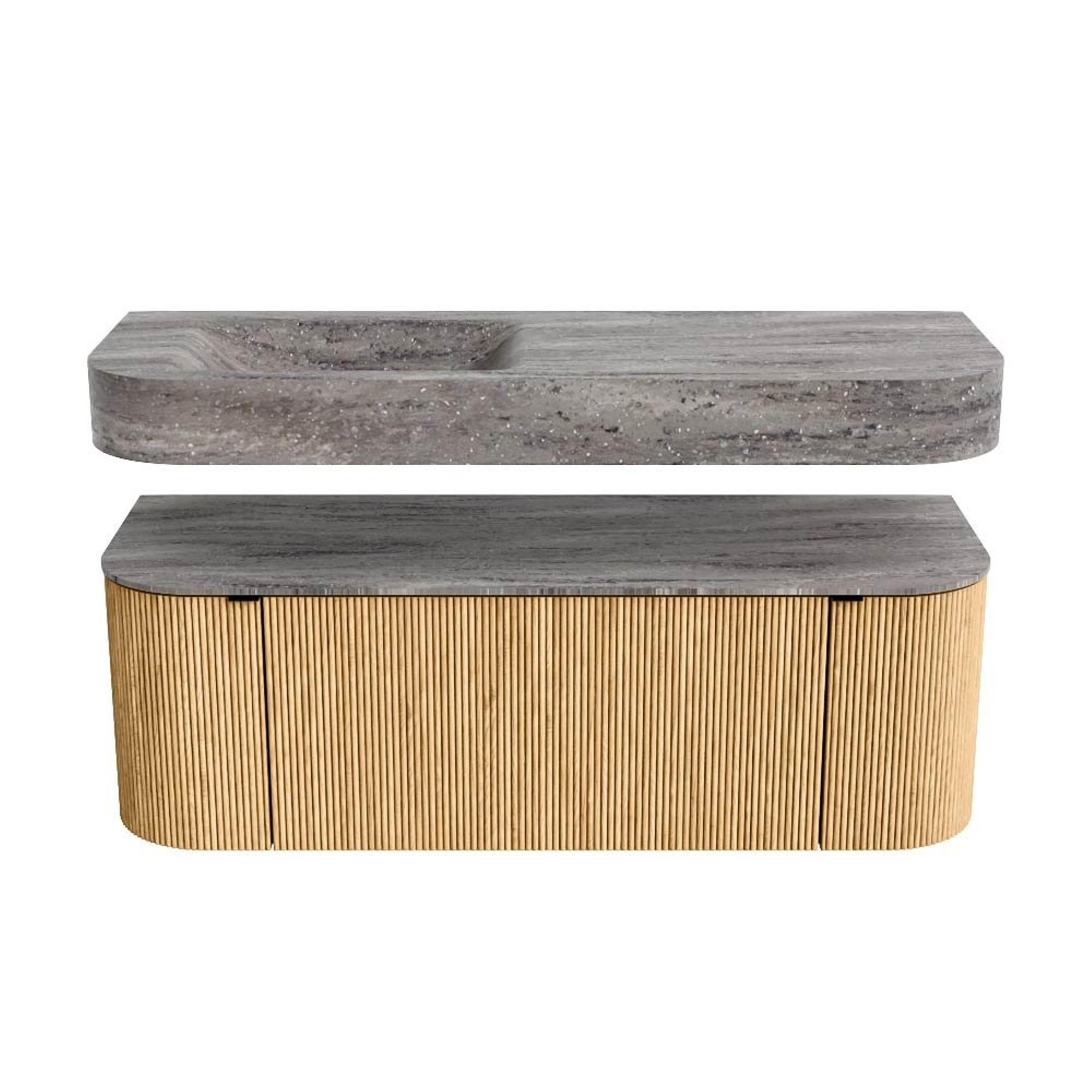 MONDIAZ THOR-DLUX 130cm badmeubel ronding links + rechts kleur Oak met 1 lade en 2 deuren. Vrijhangende wastafel CLOUD Links 1 kraangat kleur Oza.
