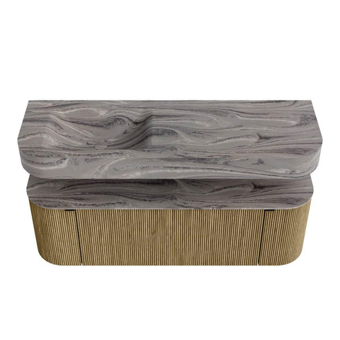 Ontdek THOR, een meubel dat architectuur en ambacht samenbrengt. Deze exclusieve serie THOR kenmerkt zich door haar verticale ribbelstructuur, uitgevoerd in massief eikenhout en eiken fineer. De vormgeving is strak en vloeiend tegelijk, met afgeronde contouren die elegantie en zachtheid uitstralen.