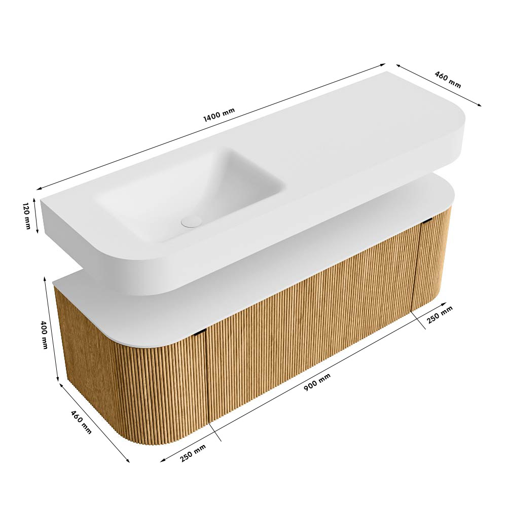 - Breedte wastafel: 140cm