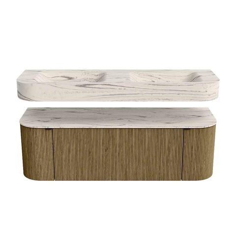 Natuurlijke materialen in warme tinten. De verticale ribbels brengen ritme en textuur in het ontwerp, terwijl het eikenhout zorgt voor een warme, ambachtelijke uitstraling. Kies uit 5 houttinten OAK, WALNUT, DUSK, SHADOW en RUBY zorgvuldig geselecteerde houtkleuren om zowel moderne als klassieke badkamers te verrijken.