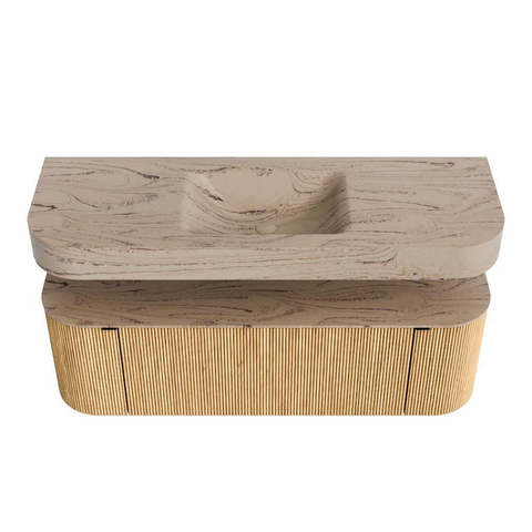 Natuurlijke materialen in warme tinten. De verticale ribbels brengen ritme en textuur in het ontwerp, terwijl het eikenhout zorgt voor een warme, ambachtelijke uitstraling. Kies uit 5 houttinten OAK, WALNUT, DUSK, SHADOW en RUBY zorgvuldig geselecteerde houtkleuren om zowel moderne als klassieke badkamers te verrijken.