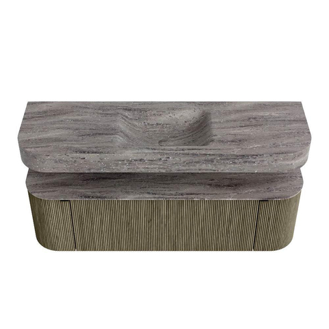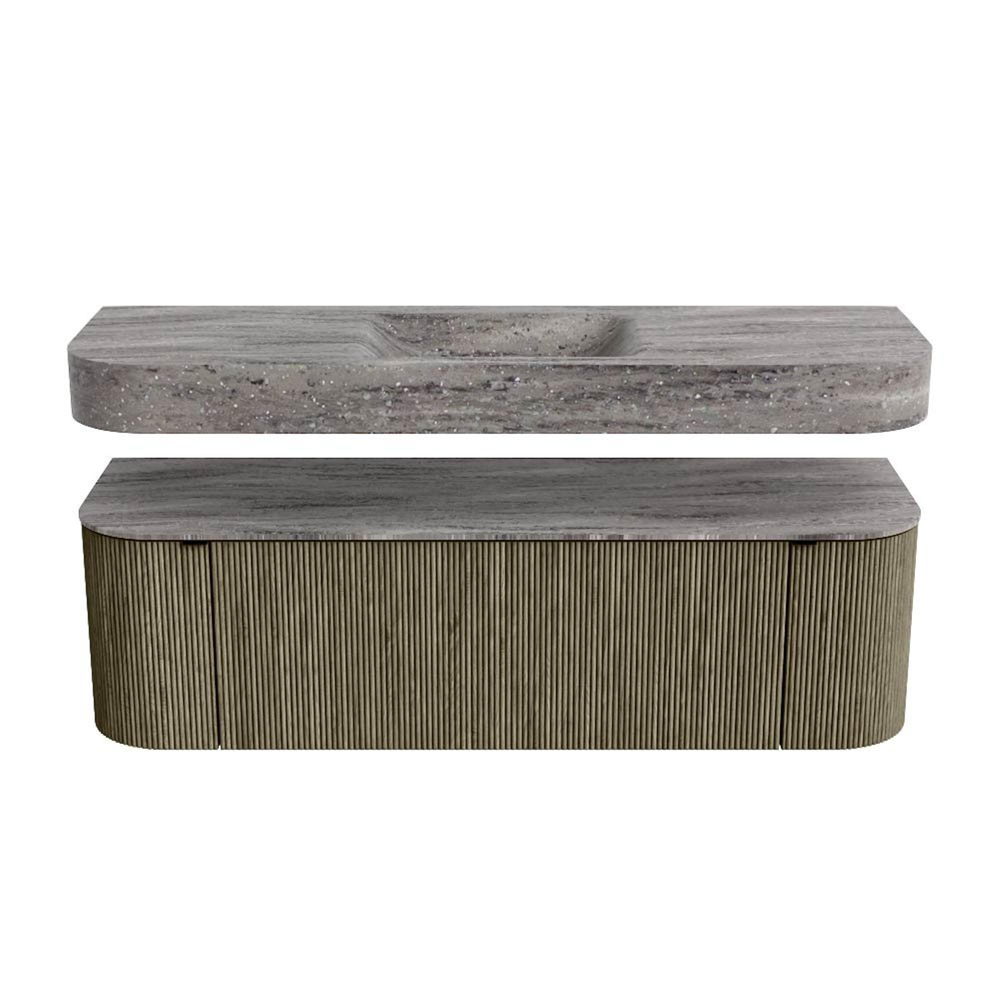 MONDIAZ THOR-DLUX 150cm badmeubel ronding links + rechts kleur Shadow met 1 lade en 2 deuren. Vrijhangende wastafel CLOUD Midden zonder kraangat kleur Oza.