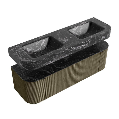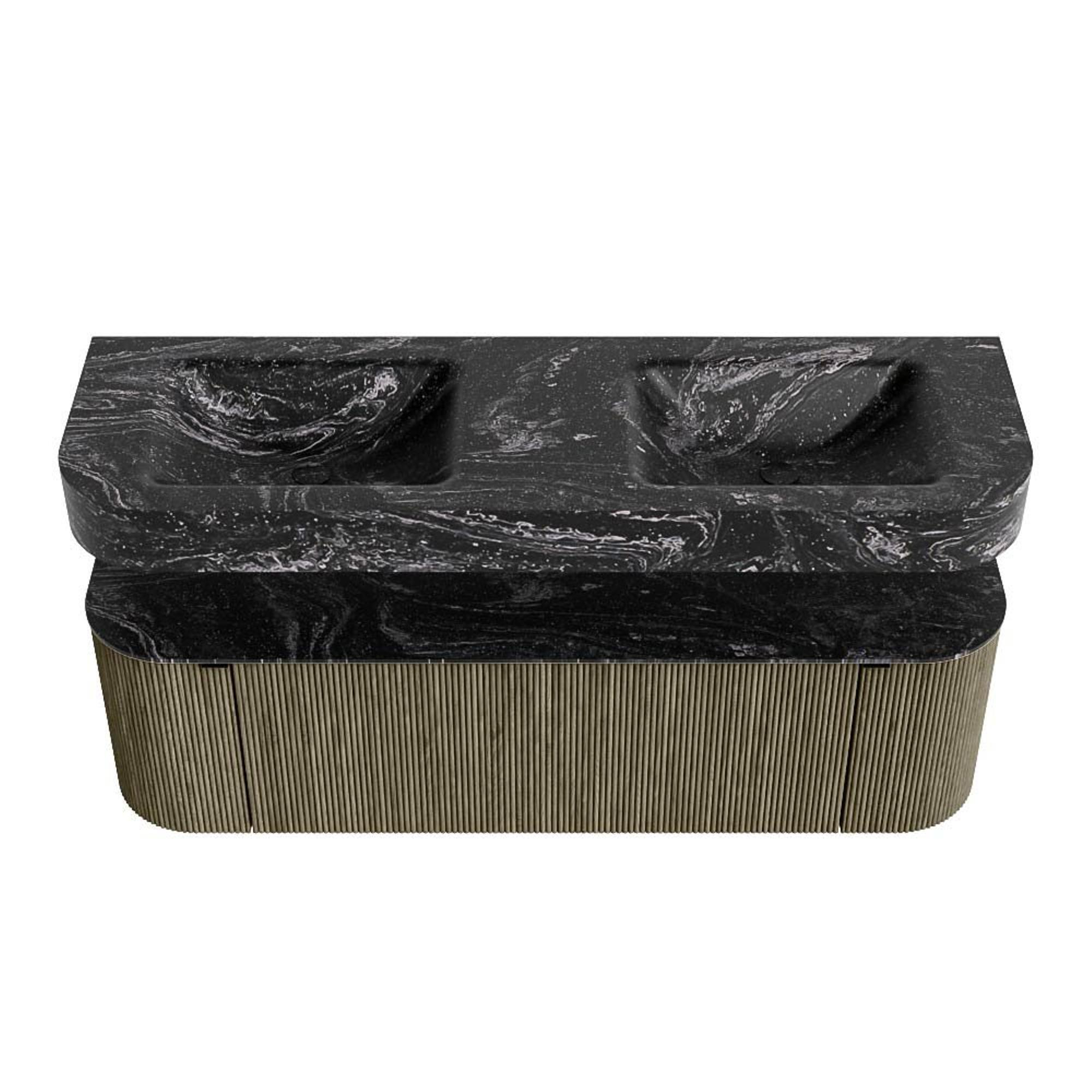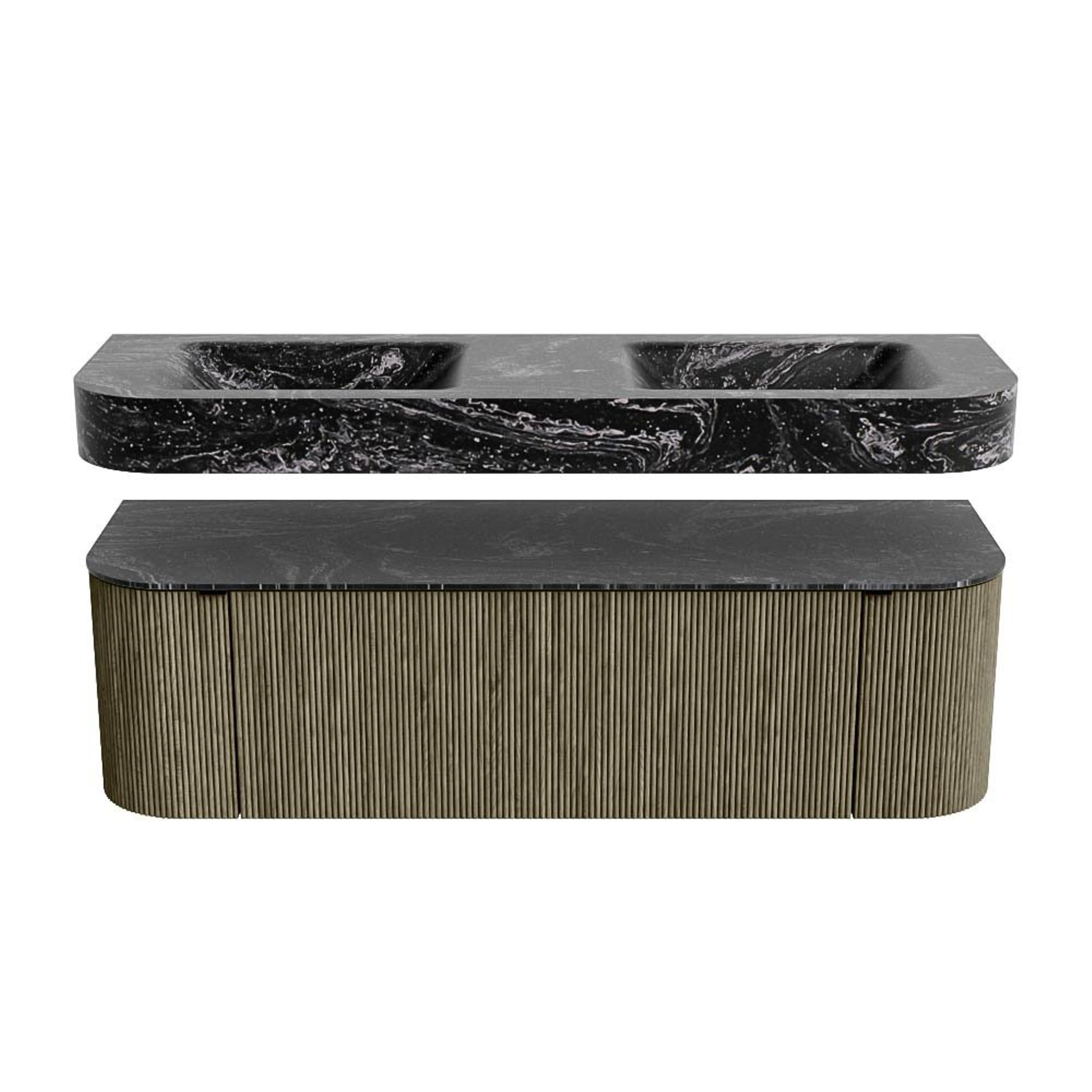 MONDIAZ THOR-DLUX 150cm badmeubel ronding links + rechts kleur Shadow met 1 lade en 2 deuren. Vrijhangende wastafel CLOUD Dubbel zonder kraangat kleur Lava.