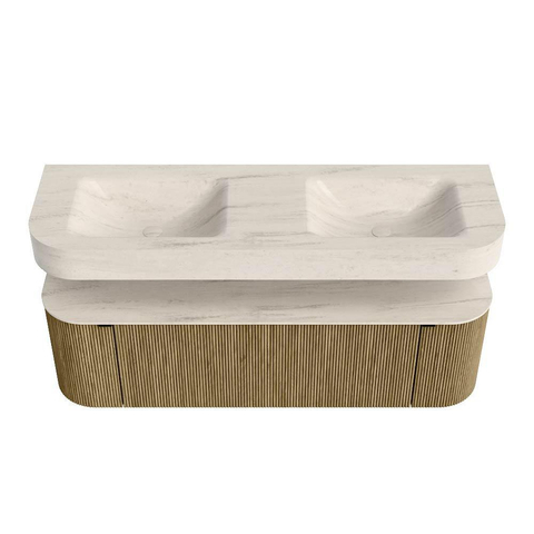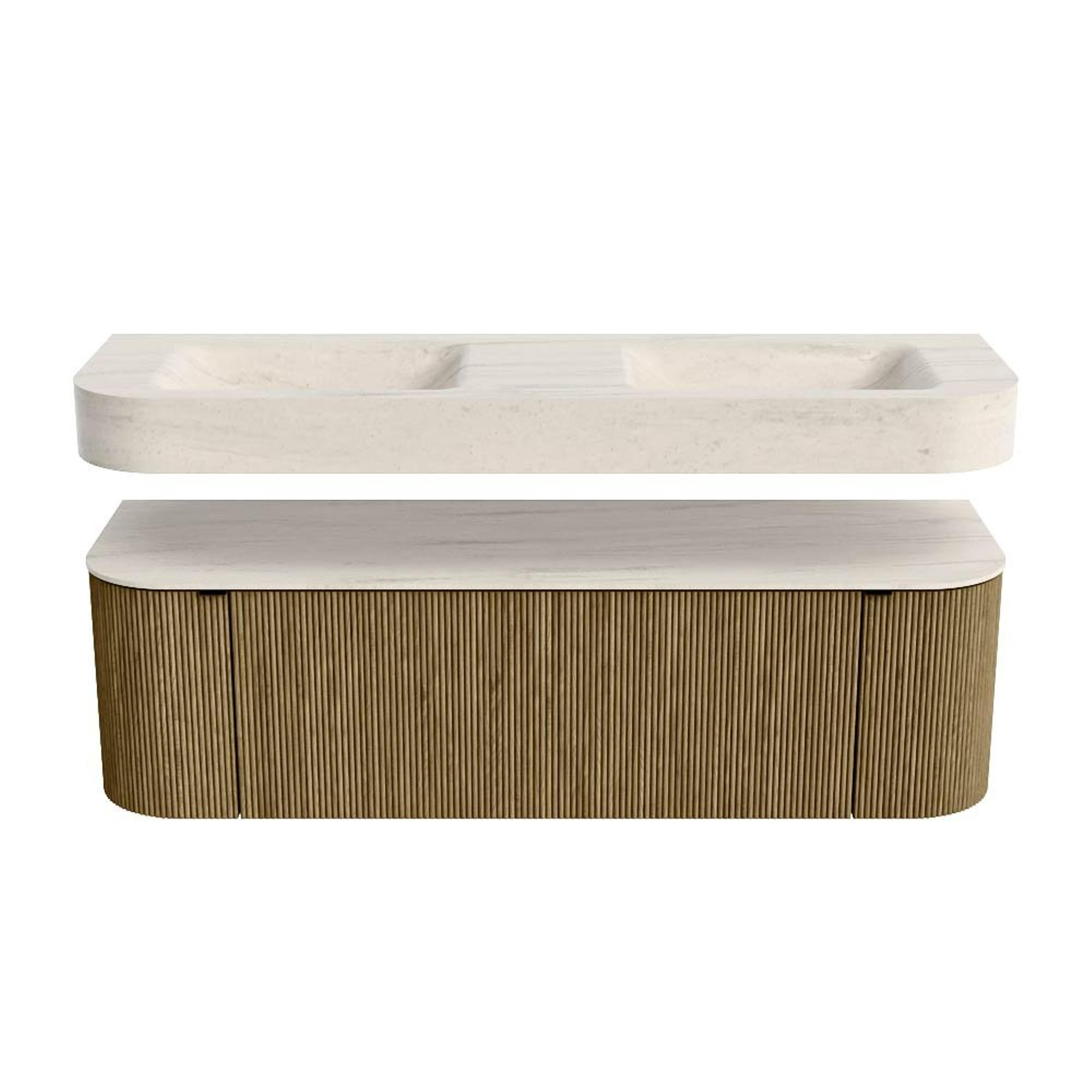 Natuurlijke materialen in warme tinten. De verticale ribbels brengen ritme en textuur in het ontwerp, terwijl het eikenhout zorgt voor een warme, ambachtelijke uitstraling. Kies uit 5 houttinten OAK, WALNUT, DUSK, SHADOW en RUBY zorgvuldig geselecteerde houtkleuren om zowel moderne als klassieke badkamers te verrijken.