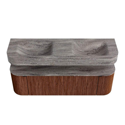 Natuurlijke materialen in warme tinten. De verticale ribbels brengen ritme en textuur in het ontwerp, terwijl het eikenhout zorgt voor een warme, ambachtelijke uitstraling. Kies uit 5 houttinten OAK, WALNUT, DUSK, SHADOW en RUBY zorgvuldig geselecteerde houtkleuren om zowel moderne als klassieke badkamers te verrijken.