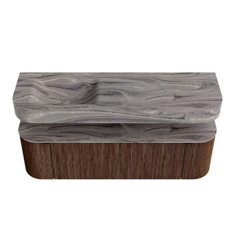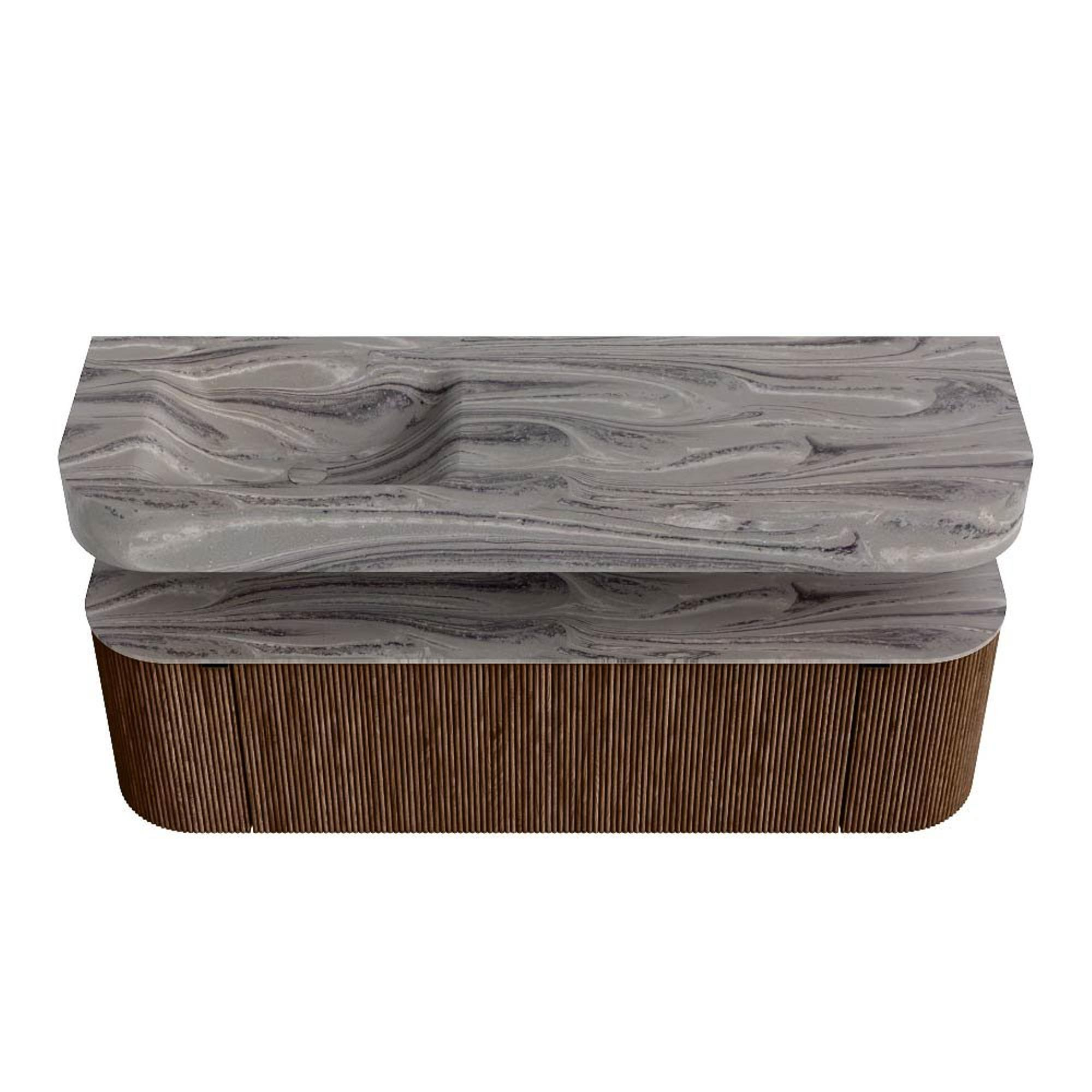 MONDIAZ THOR-DLUX 150cm badmeubel ronding links + rechts kleur Walnut met 1 lade en 2 deuren. Vrijhangende wastafel CLOUD Links 1 kraangat kleur Sombra.