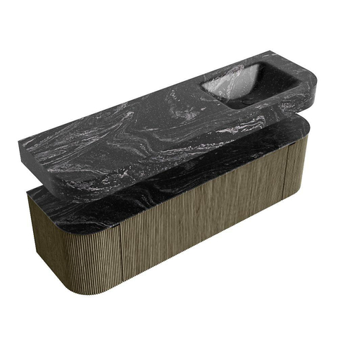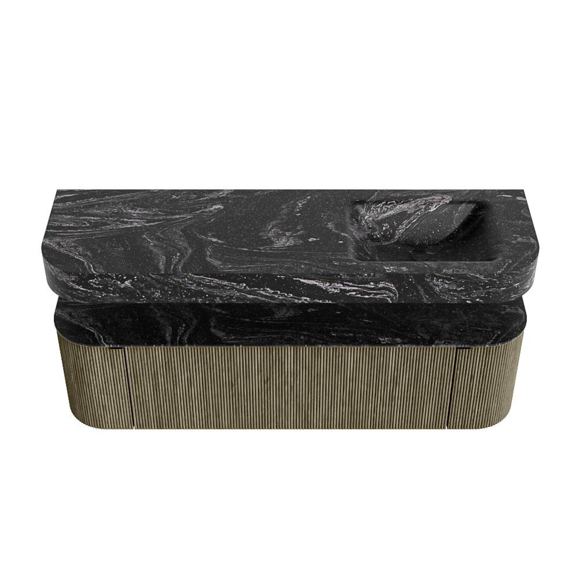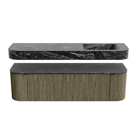 MONDIAZ THOR-DLUX 160cm badmeubel ronding links + rechts kleur Shadow met 1 lade en 2 deuren. Vrijhangende wastafel CLOUD Rechts zonder kraangat kleur Lava.