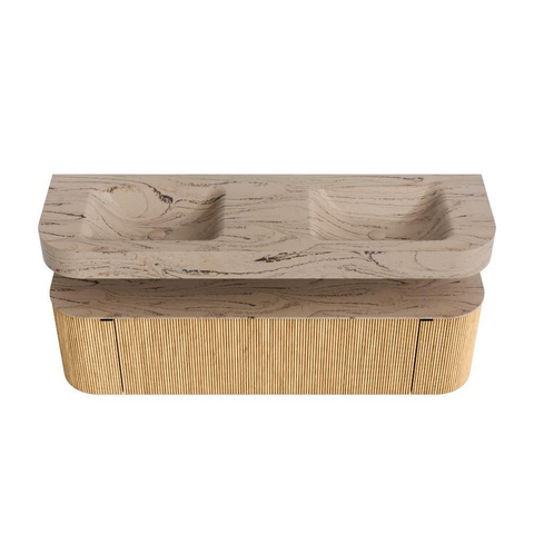 Natuurlijke materialen in warme tinten. De verticale ribbels brengen ritme en textuur in het ontwerp, terwijl het eikenhout zorgt voor een warme, ambachtelijke uitstraling. Kies uit 5 houttinten OAK, WALNUT, DUSK, SHADOW en RUBY zorgvuldig geselecteerde houtkleuren om zowel moderne als klassieke badkamers te verrijken.