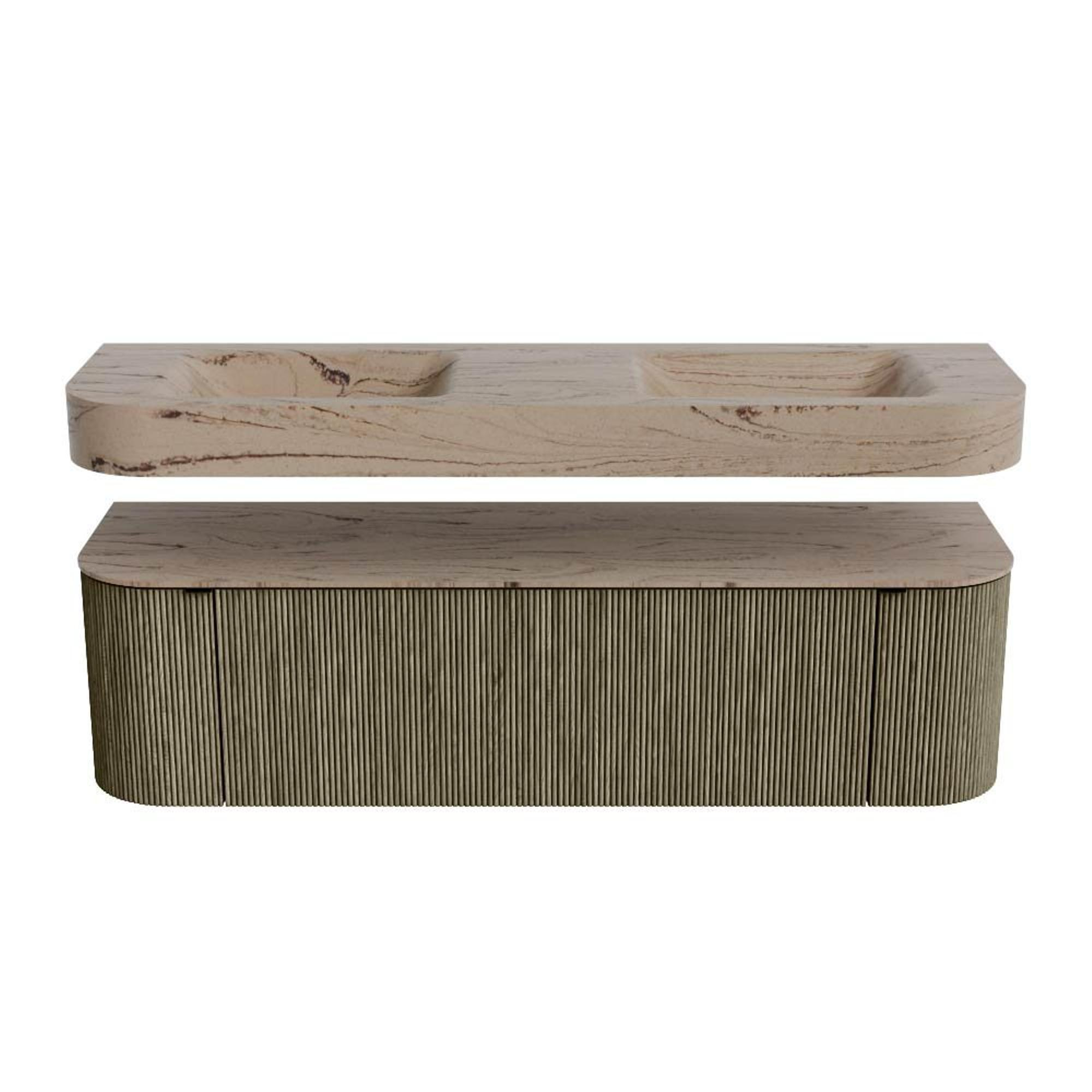 MONDIAZ THOR-DLUX 160cm badmeubel ronding links + rechts kleur Shadow met 1 lade en 2 deuren. Vrijhangende wastafel CLOUD Dubbel zonder kraangat kleur Arena.