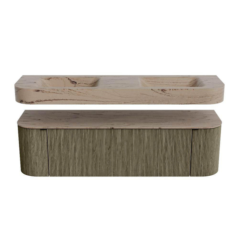 Natuurlijke materialen in warme tinten. De verticale ribbels brengen ritme en textuur in het ontwerp, terwijl het eikenhout zorgt voor een warme, ambachtelijke uitstraling. Kies uit 5 houttinten OAK, WALNUT, DUSK, SHADOW en RUBY zorgvuldig geselecteerde houtkleuren om zowel moderne als klassieke badkamers te verrijken.