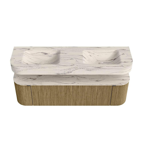 Natuurlijke materialen in warme tinten. De verticale ribbels brengen ritme en textuur in het ontwerp, terwijl het eikenhout zorgt voor een warme, ambachtelijke uitstraling. Kies uit 5 houttinten OAK, WALNUT, DUSK, SHADOW en RUBY zorgvuldig geselecteerde houtkleuren om zowel moderne als klassieke badkamers te verrijken.