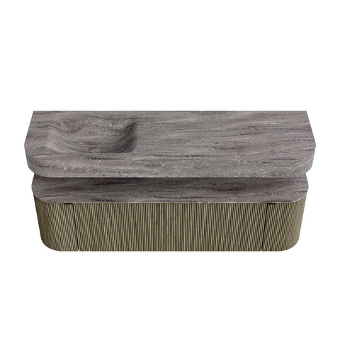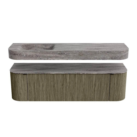 MONDIAZ THOR-DLUX 160cm badmeubel ronding links + rechts kleur Shadow met 1 lade en 2 deuren. Vrijhangende wastafel CLOUD Links zonder kraangat kleur Oza.