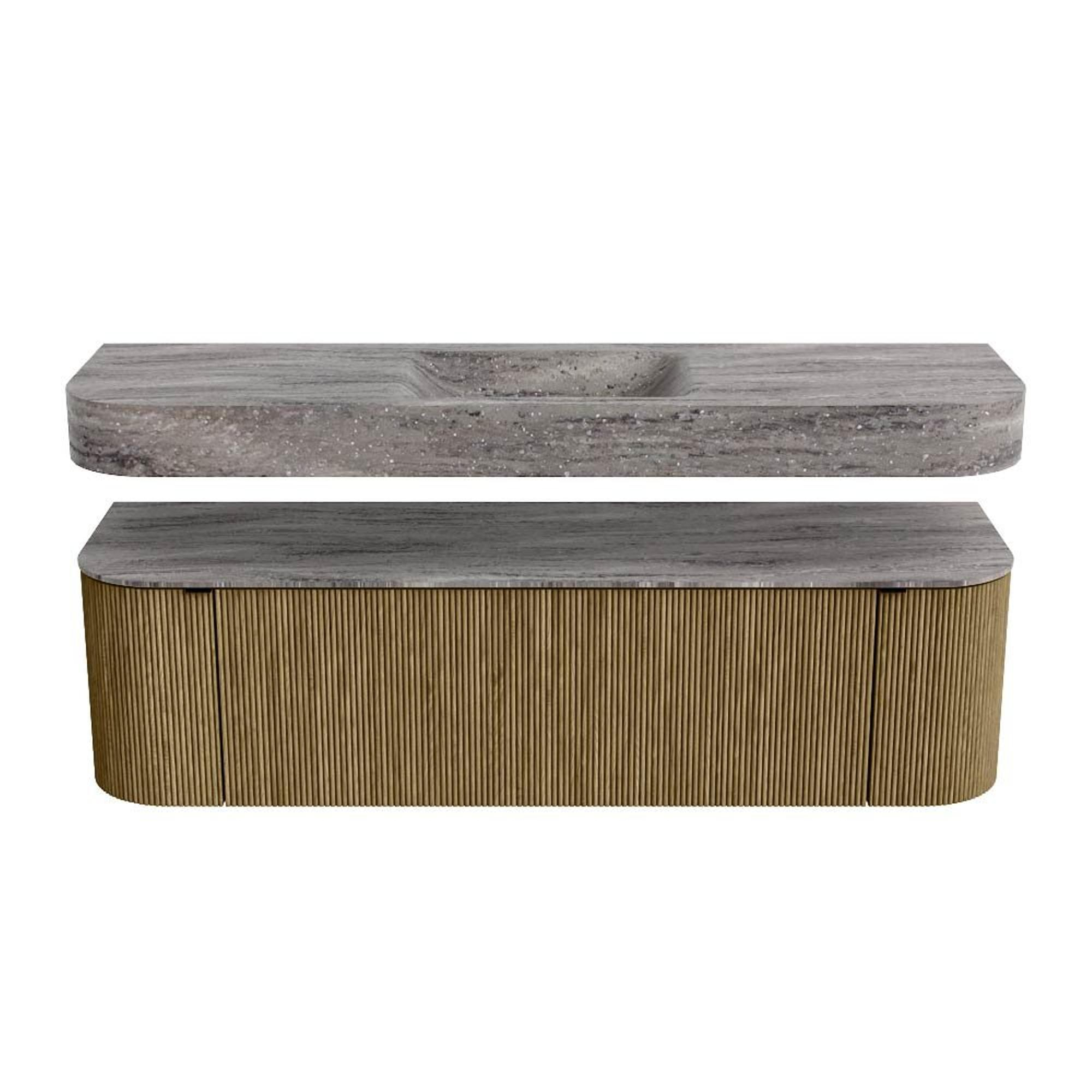 Natuurlijke materialen in warme tinten. De verticale ribbels brengen ritme en textuur in het ontwerp, terwijl het eikenhout zorgt voor een warme, ambachtelijke uitstraling. Kies uit 5 houttinten OAK, WALNUT, DUSK, SHADOW en RUBY zorgvuldig geselecteerde houtkleuren om zowel moderne als klassieke badkamers te verrijken.