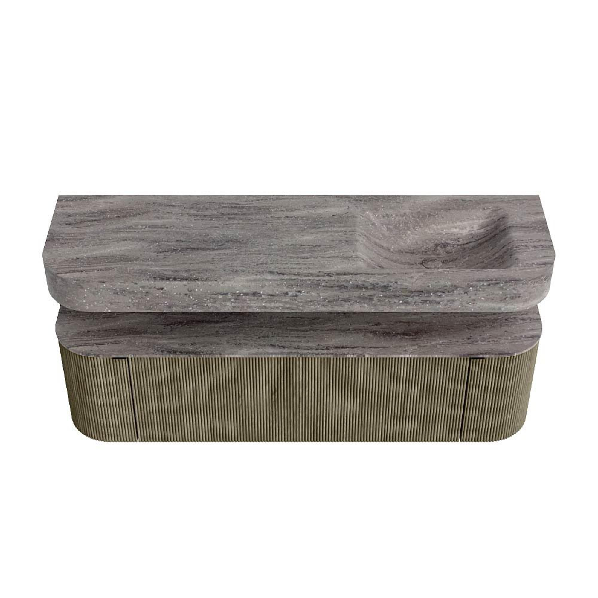 MONDIAZ THOR-DLUX 160cm badmeubel ronding links + rechts kleur Shadow met 1 lade en 2 deuren. Vrijhangende wastafel CLOUD Rechts 1 kraangat kleur Oza.
