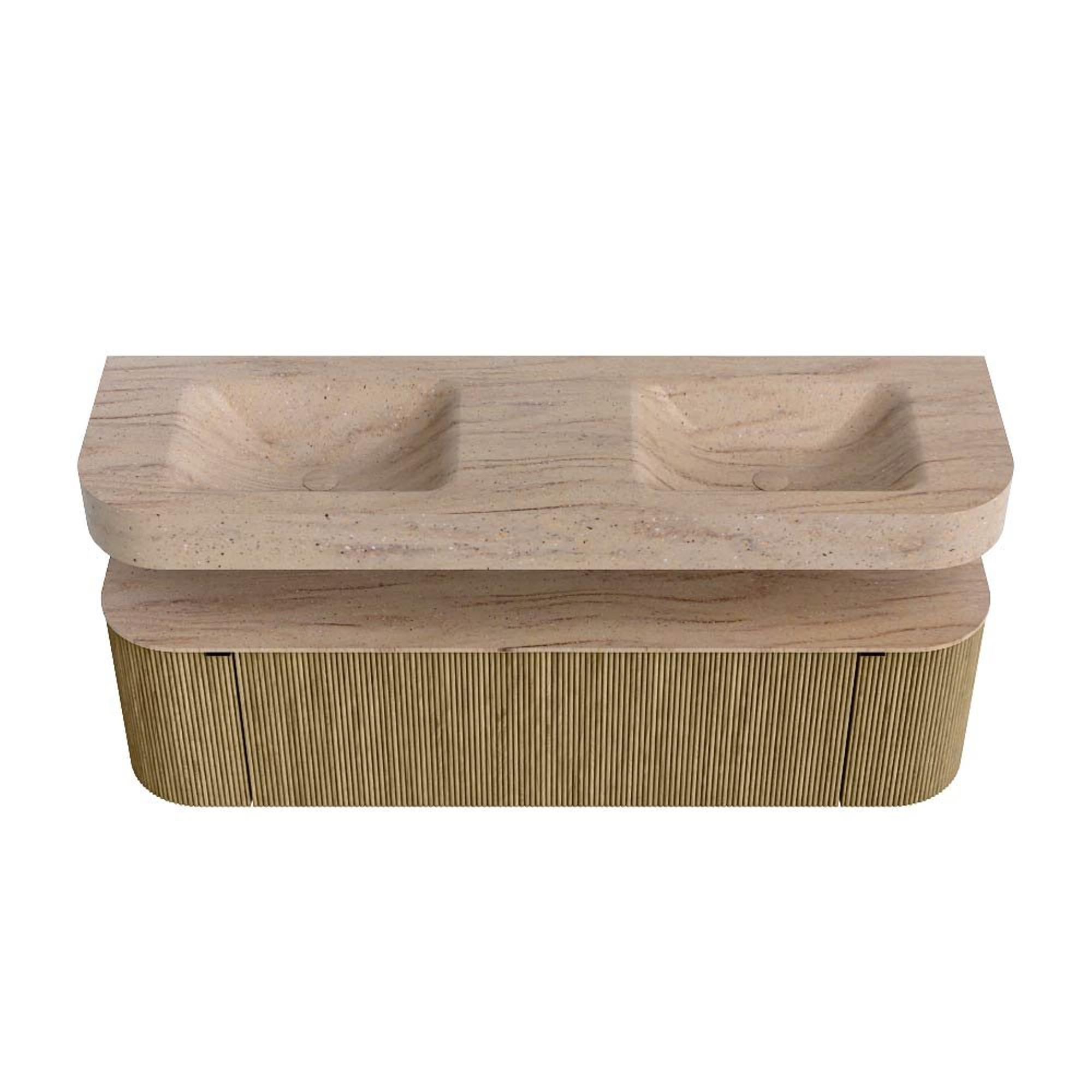 Natuurlijke materialen in warme tinten. De verticale ribbels brengen ritme en textuur in het ontwerp, terwijl het eikenhout zorgt voor een warme, ambachtelijke uitstraling. Kies uit 5 houttinten OAK, WALNUT, DUSK, SHADOW en RUBY zorgvuldig geselecteerde houtkleuren om zowel moderne als klassieke badkamers te verrijken.