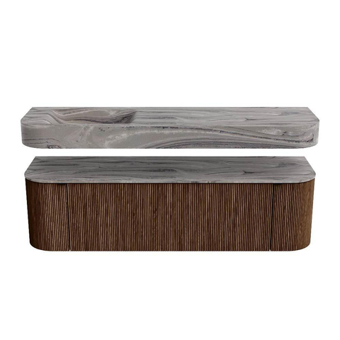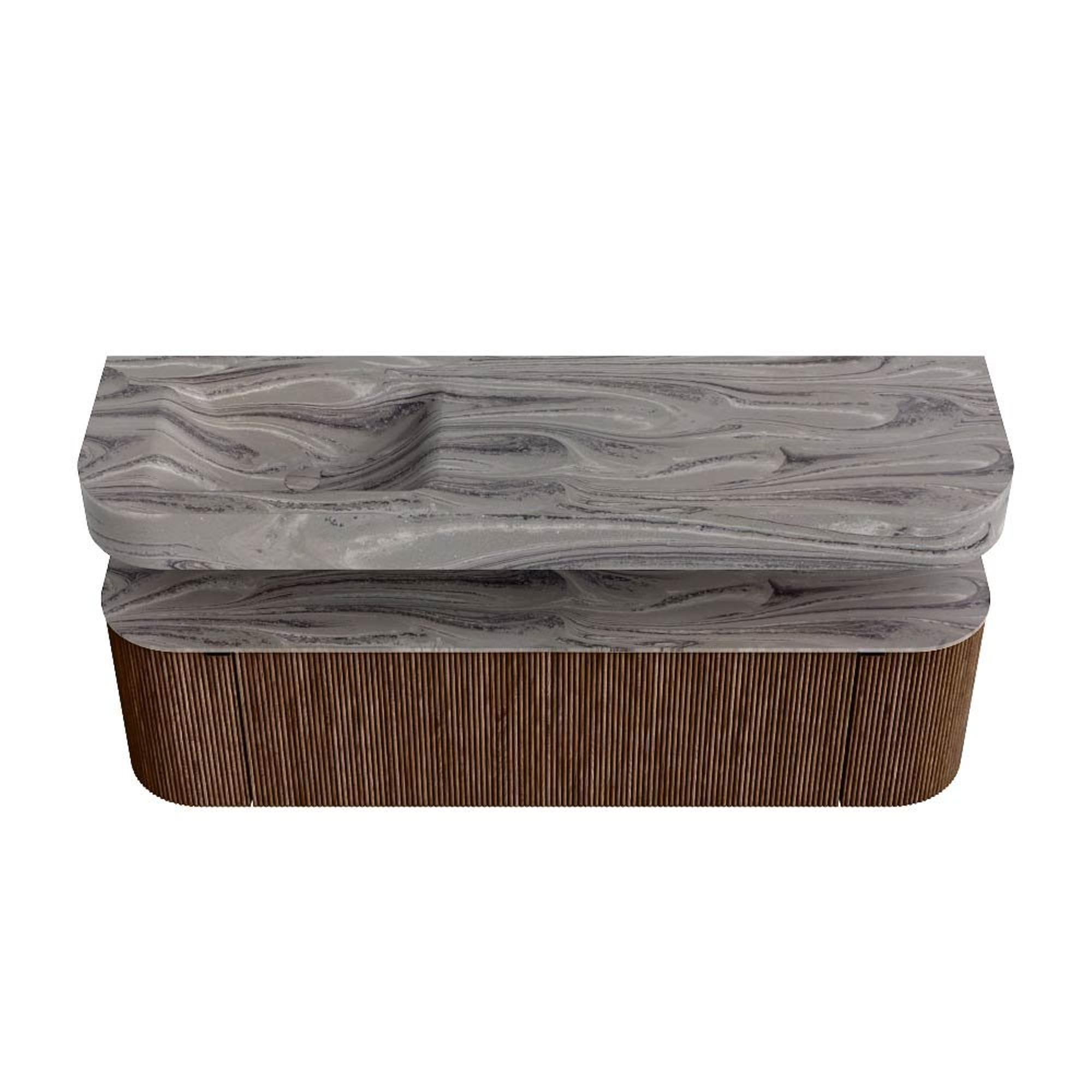 MONDIAZ THOR-DLUX 160cm badmeubel ronding links + rechts kleur Walnut met 1 lade en 2 deuren. Vrijhangende wastafel CLOUD Links 1 kraangat kleur Sombra.