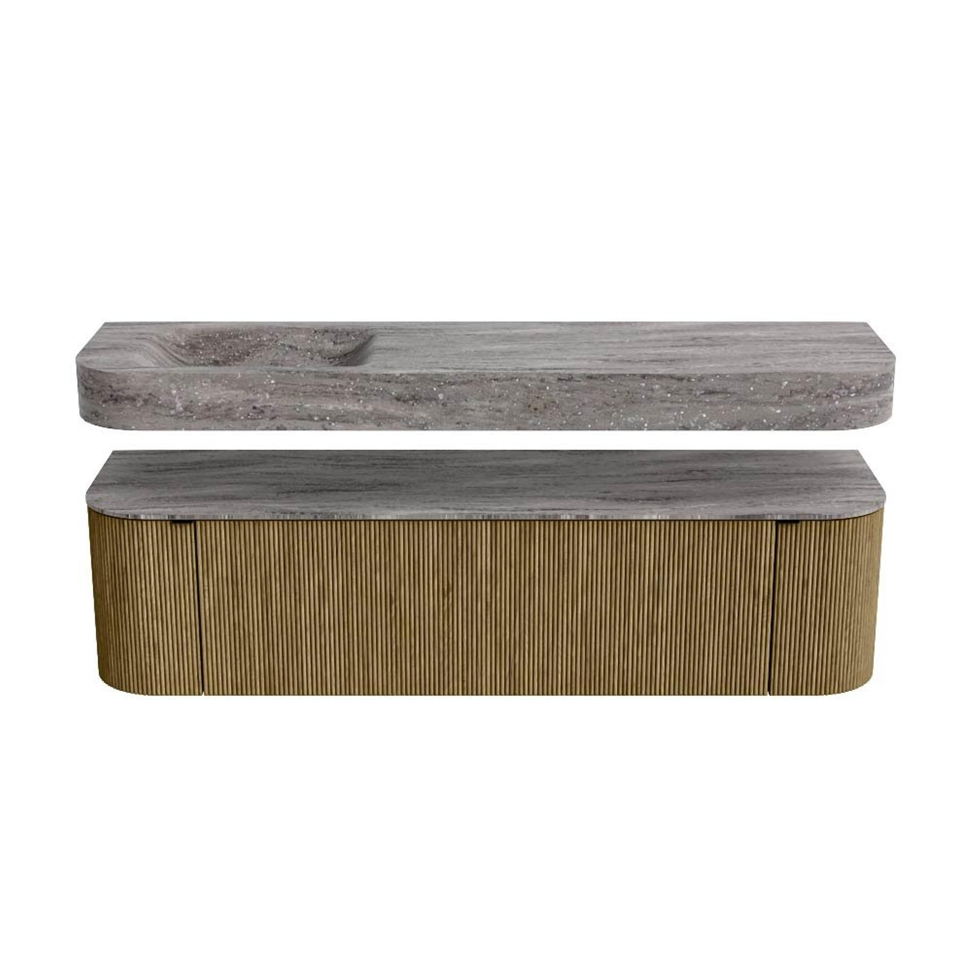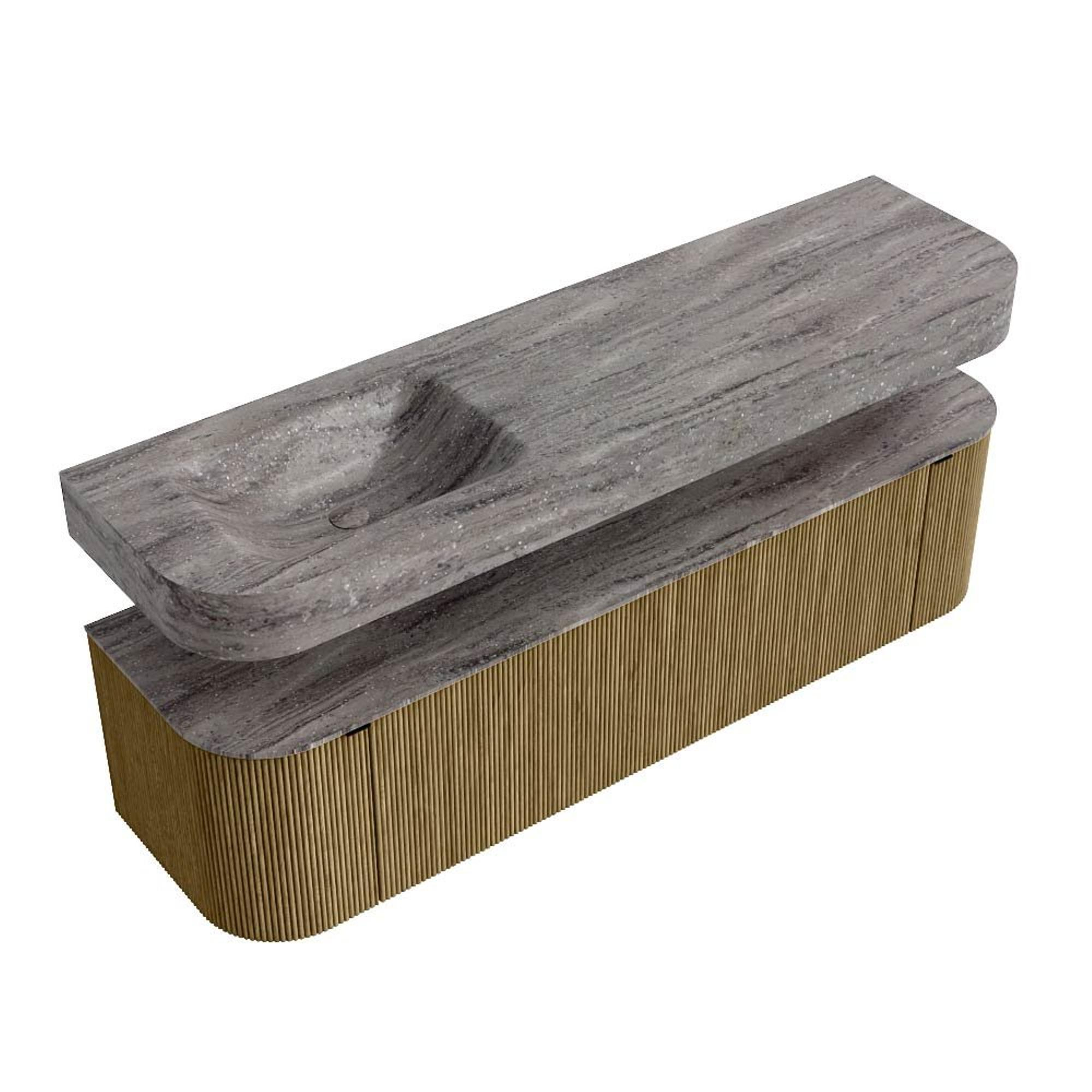 MONDIAZ THOR-DLUX 170cm badmeubel ronding links + rechts kleur Dusk met 1 lade en 2 deuren. Vrijhangende wastafel CLOUD Links 1 kraangat kleur Oza.