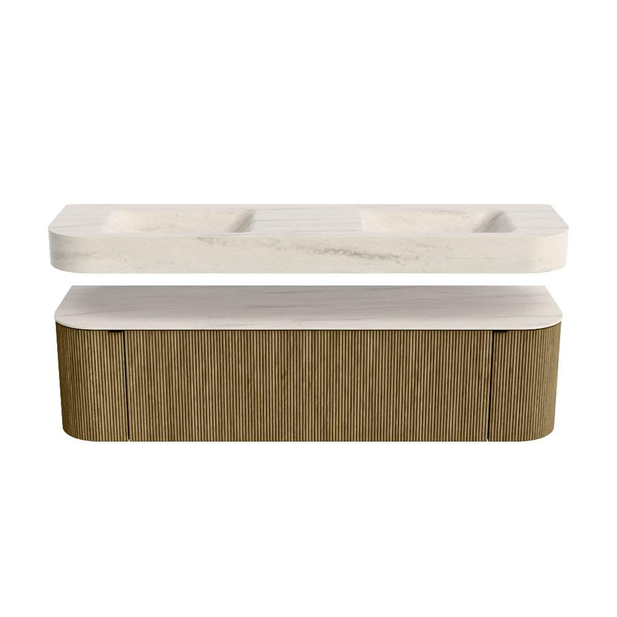 Natuurlijke materialen in warme tinten. De verticale ribbels brengen ritme en textuur in het ontwerp, terwijl het eikenhout zorgt voor een warme, ambachtelijke uitstraling. Kies uit 5 houttinten OAK, WALNUT, DUSK, SHADOW en RUBY zorgvuldig geselecteerde houtkleuren om zowel moderne als klassieke badkamers te verrijken.