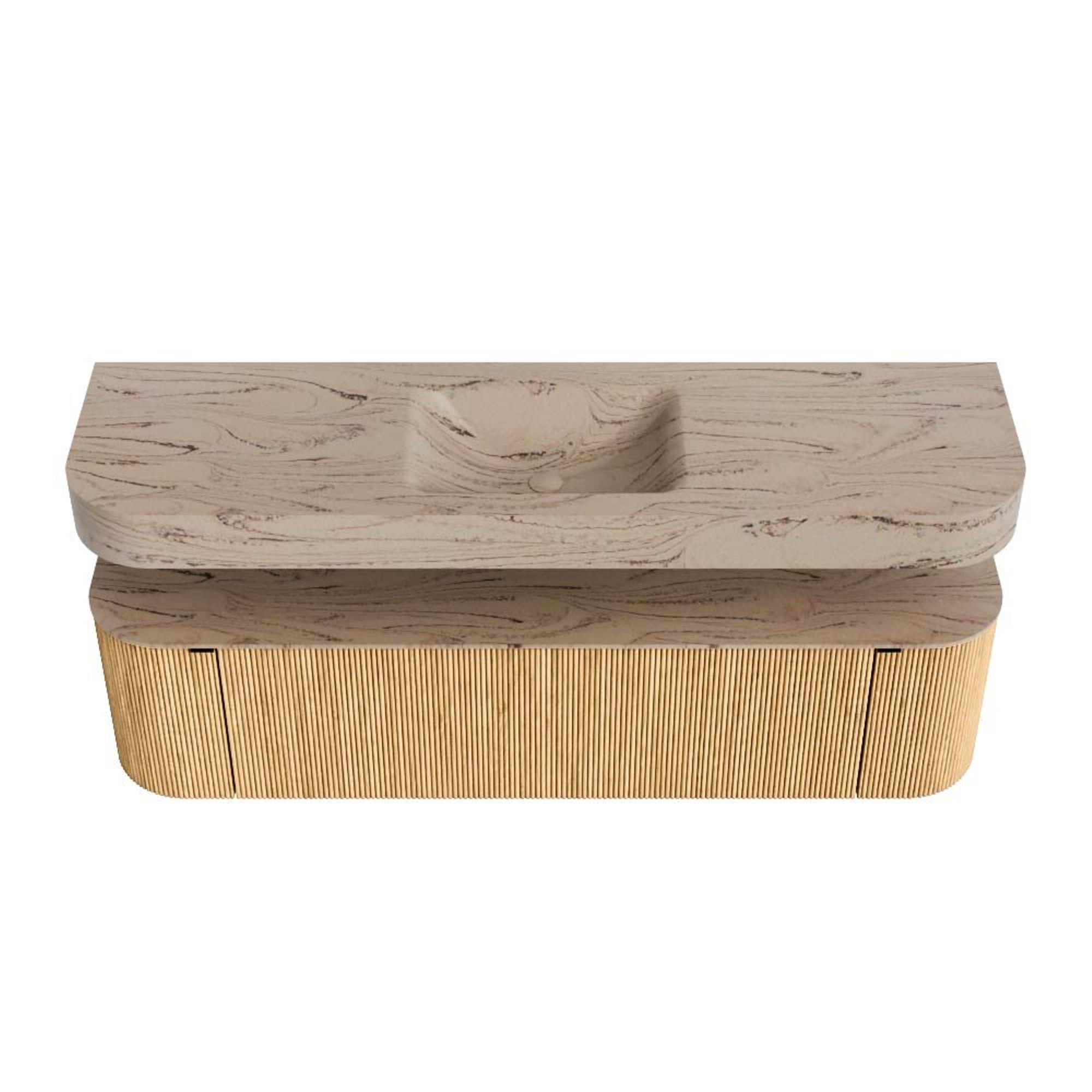 MONDIAZ THOR-DLUX 170cm badmeubel ronding links + rechts kleur Oak met 1 lade en 2 deuren. Vrijhangende wastafel CLOUD Midden zonder kraangat kleur Arena.