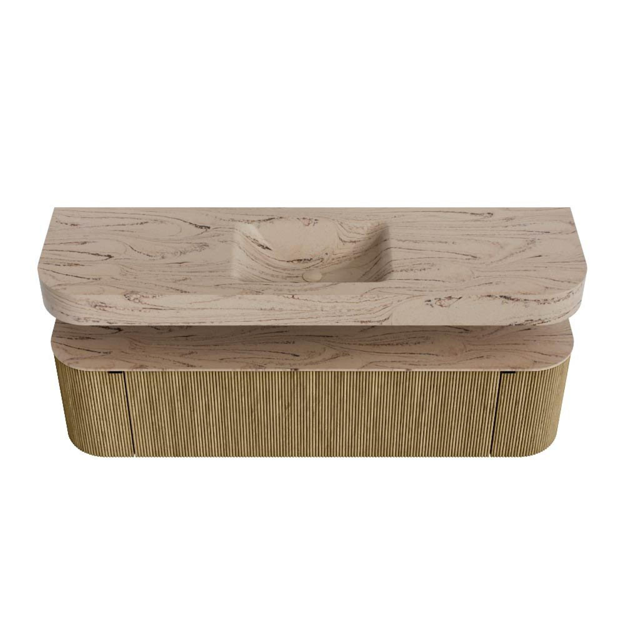 MONDIAZ THOR-DLUX 170cm badmeubel ronding links + rechts kleur Dusk met 1 lade en 2 deuren. Vrijhangende wastafel CLOUD Midden 1 kraangat kleur Arena.