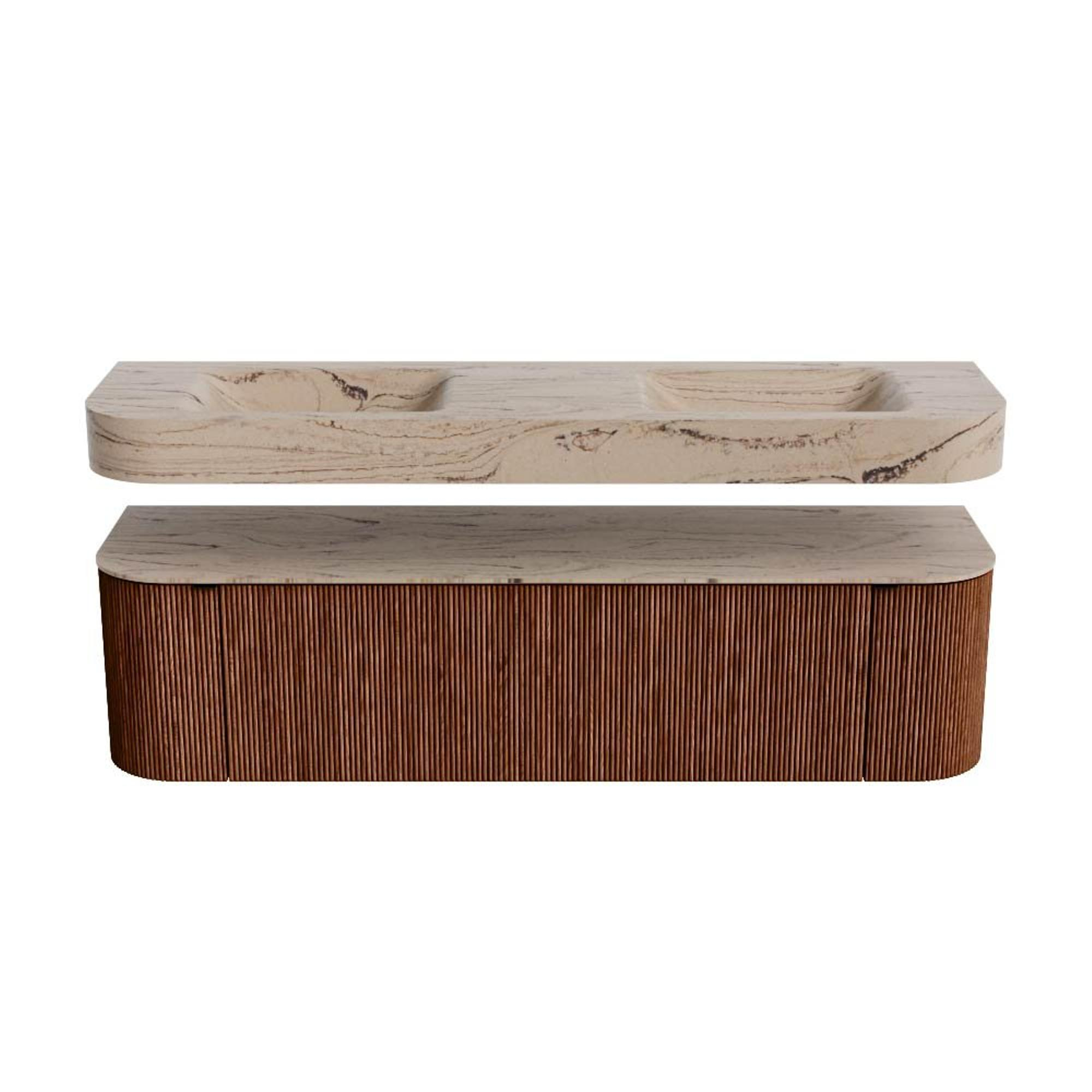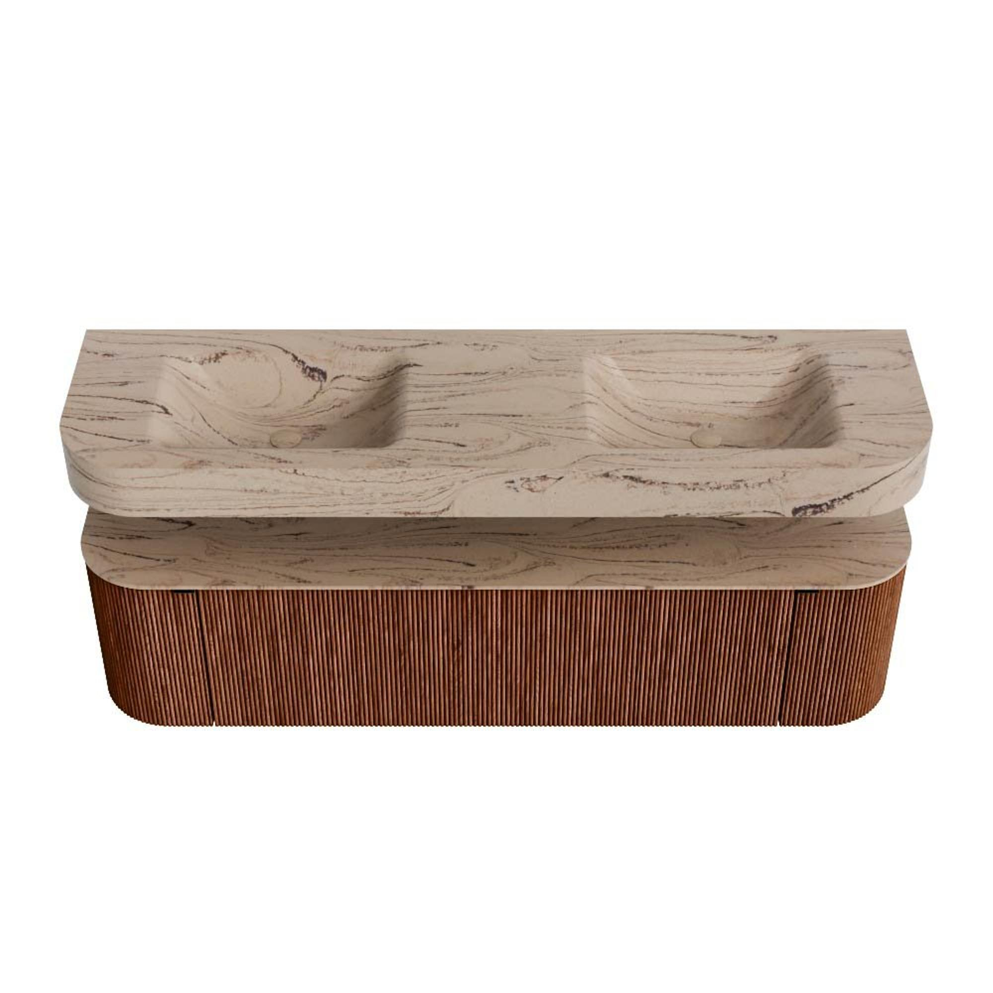 MONDIAZ THOR-DLUX 170cm badmeubel ronding links + rechts kleur Ruby met 1 lade en 2 deuren. Vrijhangende wastafel CLOUD Dubbel 2 kraangaten kleur Arena.