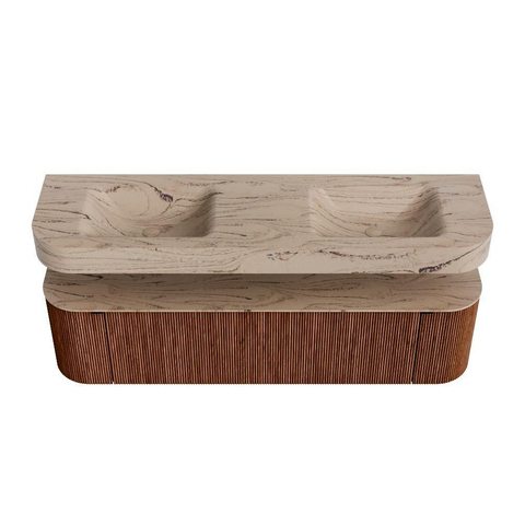 Natuurlijke materialen in warme tinten. De verticale ribbels brengen ritme en textuur in het ontwerp, terwijl het eikenhout zorgt voor een warme, ambachtelijke uitstraling. Kies uit 5 houttinten OAK, WALNUT, DUSK, SHADOW en RUBY zorgvuldig geselecteerde houtkleuren om zowel moderne als klassieke badkamers te verrijken.