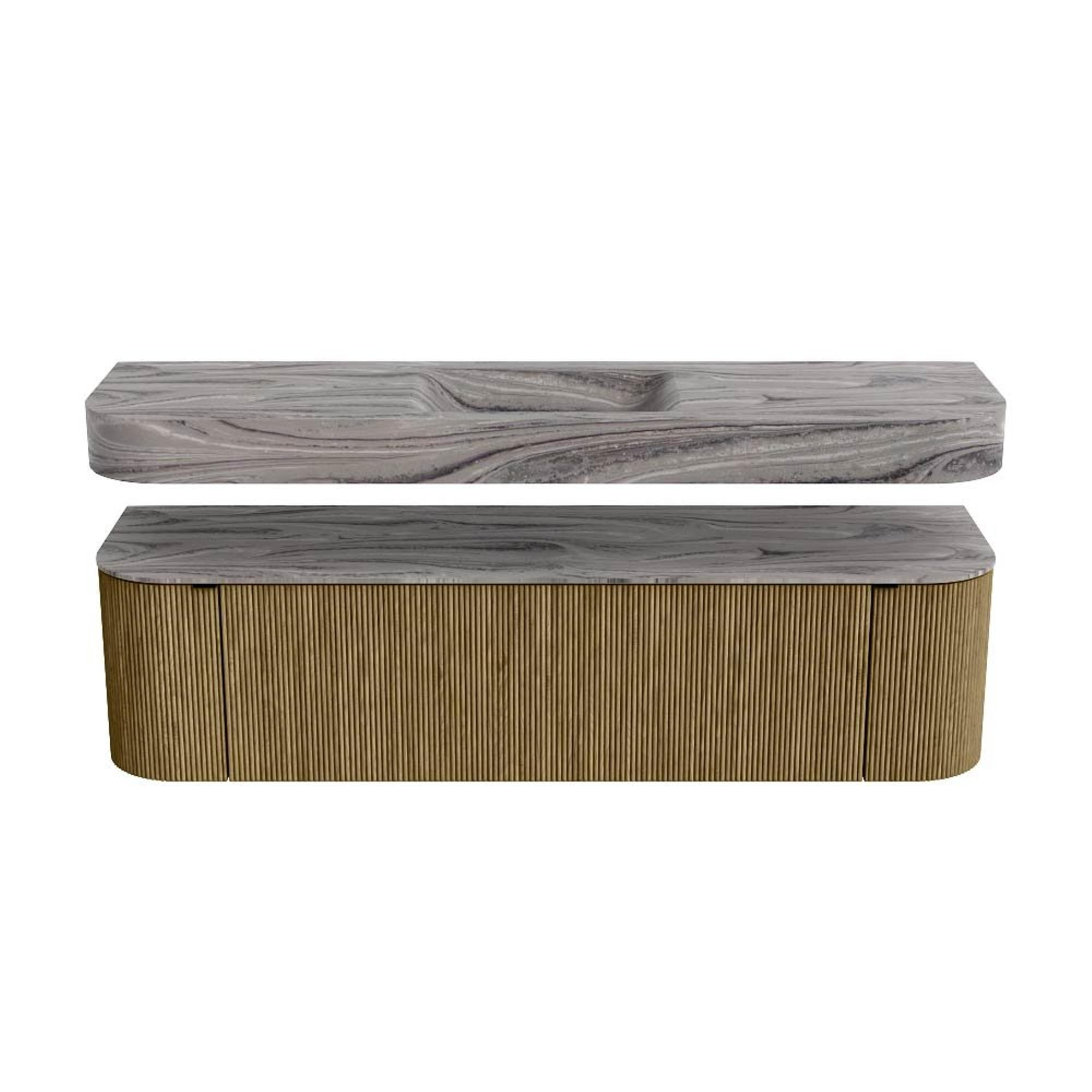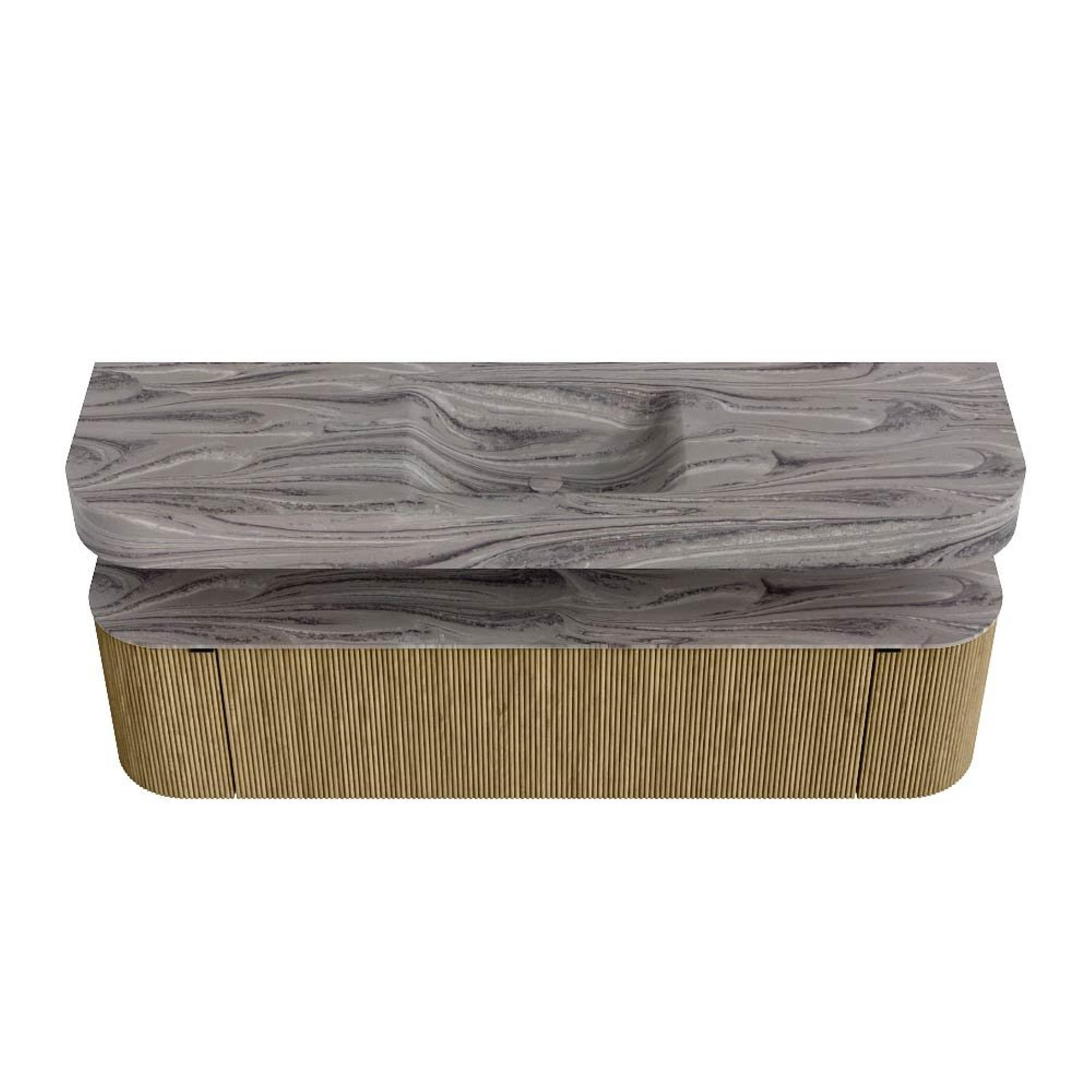 MONDIAZ THOR-DLUX 170cm badmeubel ronding links + rechts kleur Dusk met 1 lade en 2 deuren. Vrijhangende wastafel CLOUD Midden 1 kraangat kleur Sombra.