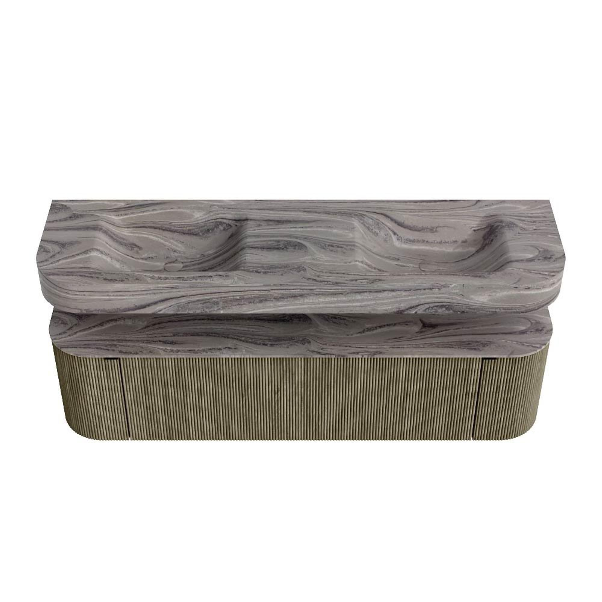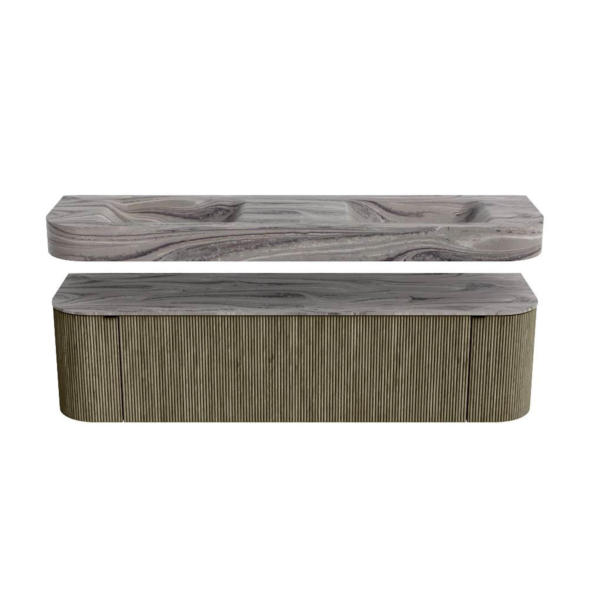 MONDIAZ THOR-DLUX 170cm badmeubel ronding links + rechts kleur Shadow met 1 lade en 2 deuren. Vrijhangende wastafel CLOUD Dubbel 2 kraangaten kleur Sombra.