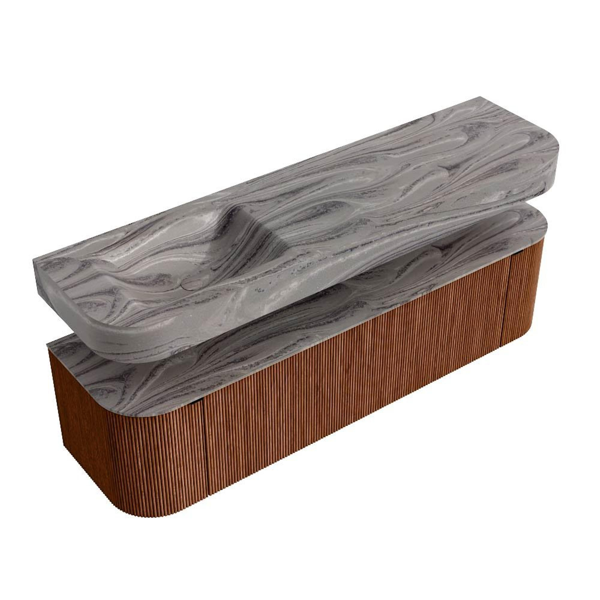 MONDIAZ THOR-DLUX 170cm badmeubel ronding links + rechts kleur Ruby met 1 lade en 2 deuren. Vrijhangende wastafel CLOUD Links zonder kraangat kleur Sombra.