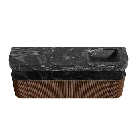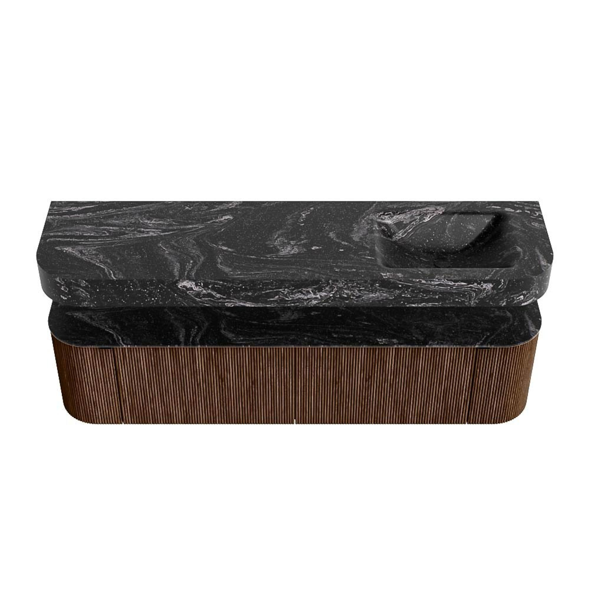 MONDIAZ THOR-DLUX 180cm badmeubel ronding links + rechts kleur Walnut met 2 lades en 2 deuren. Vrijhangende wastafel CLOUD Rechts 1 kraangat kleur Lava.