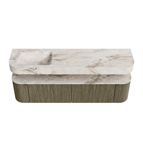 MONDIAZ THOR-DLUX 180cm badmeubel ronding links + rechts kleur Shadow met 2 lades en 2 deuren. Vrijhangende wastafel CLOUD Links 1 kraangat kleur Frappe.
