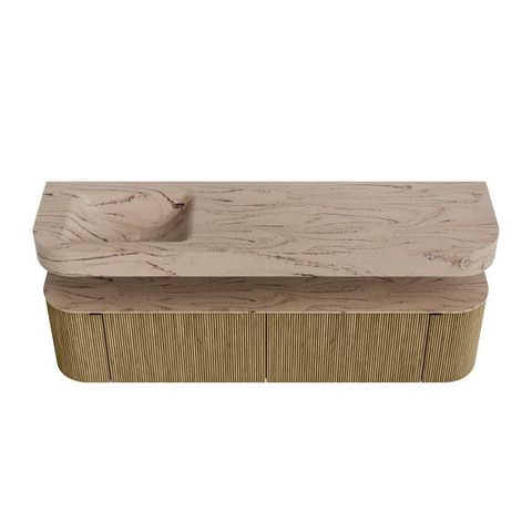 MONDIAZ THOR-DLUX 180cm badmeubel ronding links + rechts kleur Dusk met 2 lades en 2 deuren. Vrijhangende wastafel CLOUD Links 1 kraangat kleur Arena.