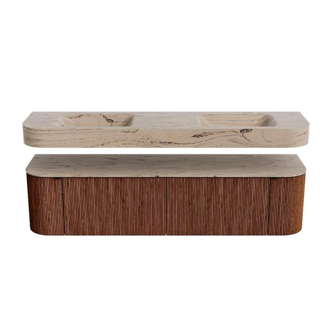 Natuurlijke materialen in warme tinten. De verticale ribbels brengen ritme en textuur in het ontwerp, terwijl het eikenhout zorgt voor een warme, ambachtelijke uitstraling. Kies uit 5 houttinten OAK, WALNUT, DUSK, SHADOW en RUBY zorgvuldig geselecteerde houtkleuren om zowel moderne als klassieke badkamers te verrijken.