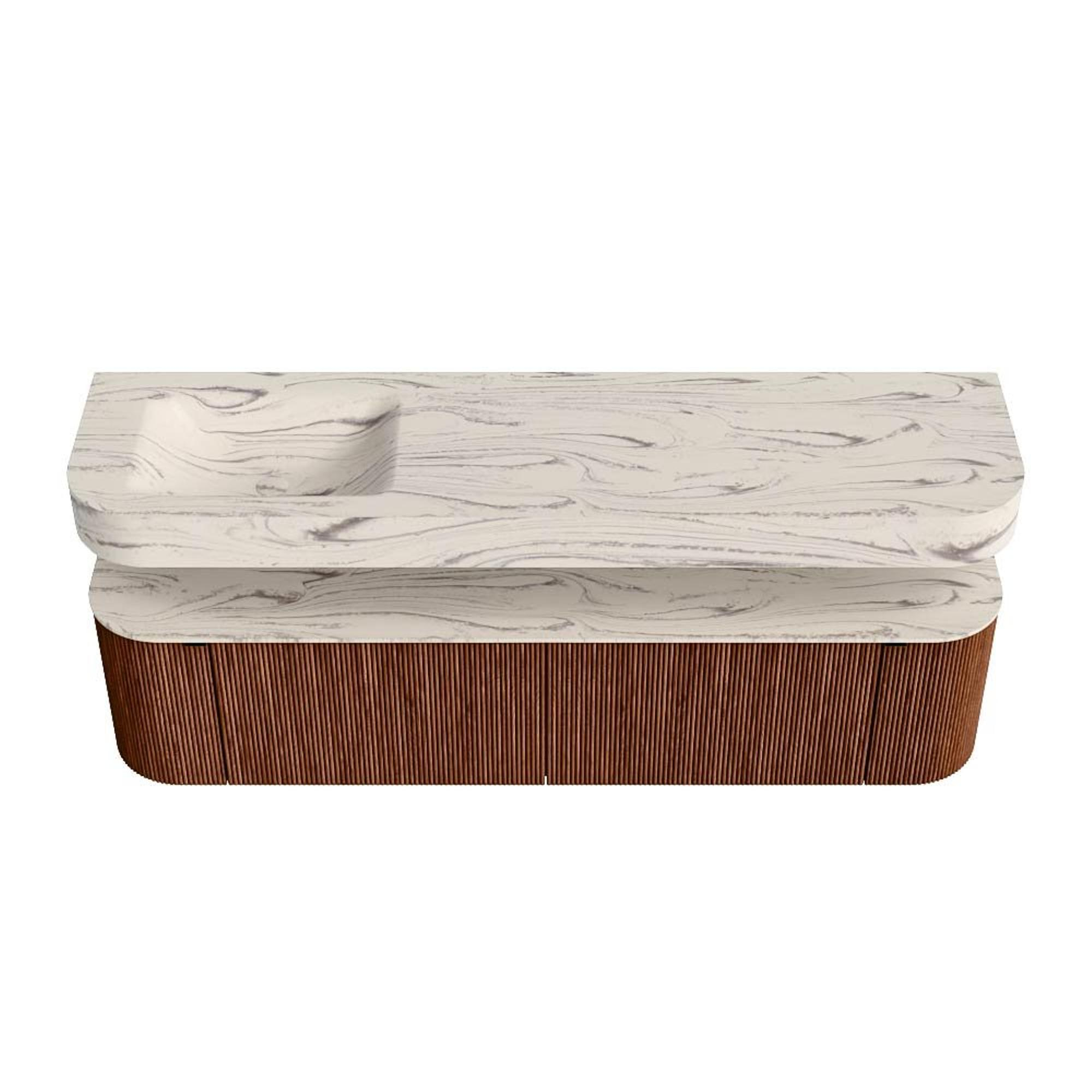 MONDIAZ THOR-DLUX 180cm badmeubel ronding links + rechts kleur Ruby met 2 lades en 2 deuren. Vrijhangende wastafel CLOUD Links zonder kraangat kleur Nata.