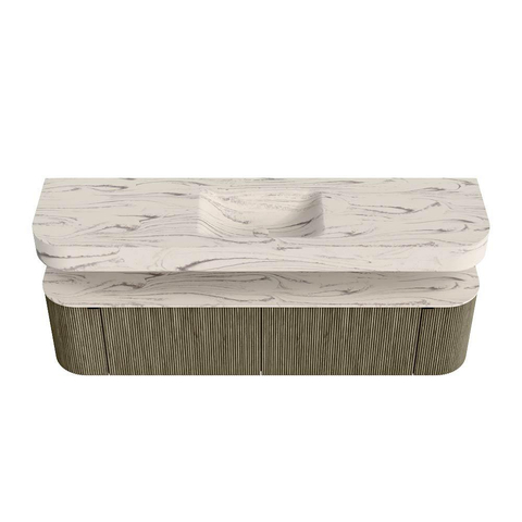 MONDIAZ THOR-DLUX 180cm badmeubel ronding links + rechts kleur Shadow met 2 lades en 2 deuren. Vrijhangende wastafel CLOUD Midden zonder kraangat kleur Nata.