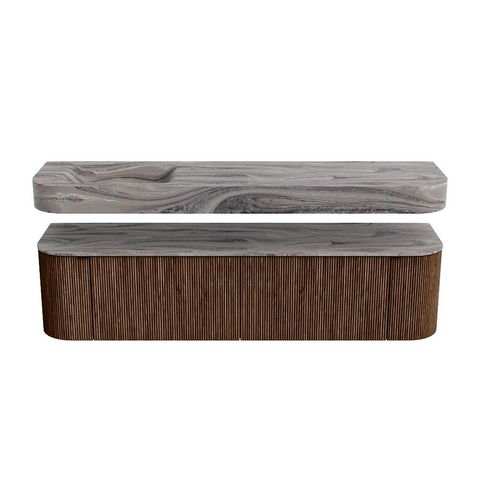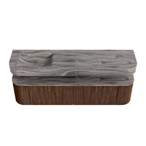 MONDIAZ THOR-DLUX 180cm badmeubel ronding links + rechts kleur Walnut met 2 lades en 2 deuren. Vrijhangende wastafel CLOUD Links 1 kraangat kleur Sombra.