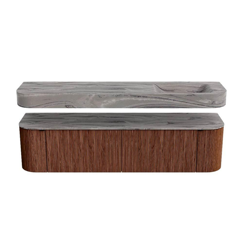 MONDIAZ THOR-DLUX 180cm badmeubel ronding links + rechts kleur Ruby met 2 lades en 2 deuren. Vrijhangende wastafel CLOUD Rechts 1 kraangat kleur Sombra.